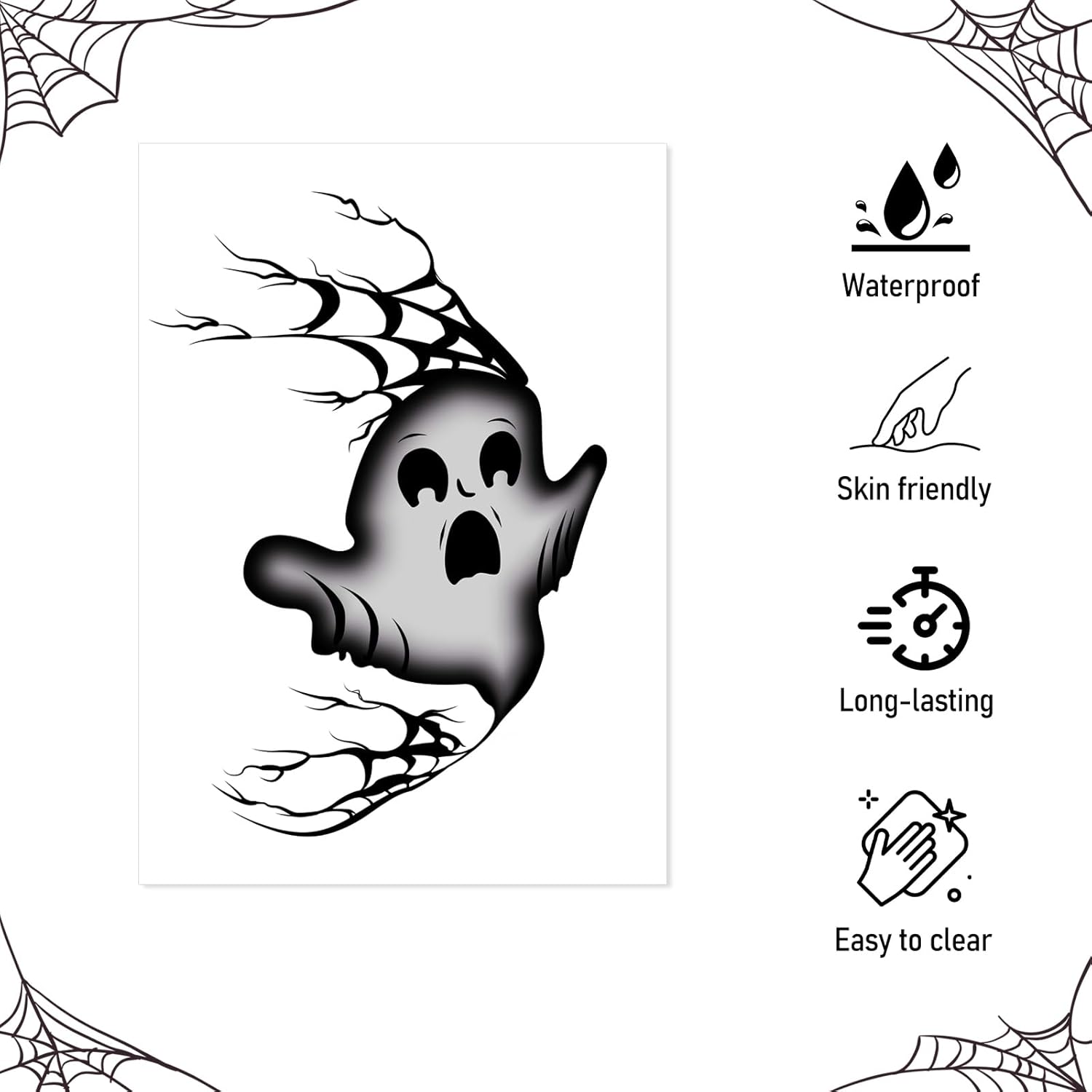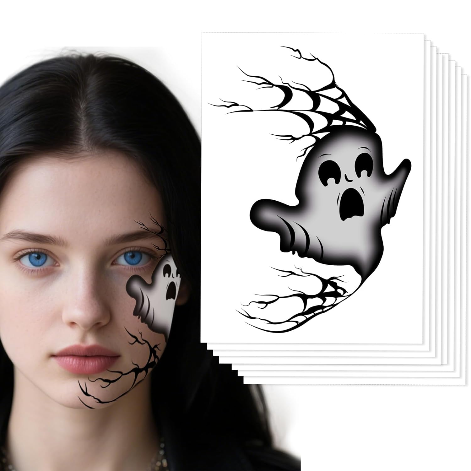 - 【What You Get & Quantity】You will get 8 Halloween face tattoo stickers featuring scary cartoon ghosts. These tattoos are perfect for creating an instant spooky look, they are applied in seconds and easy to remove once the party is over. Perfect for those looking for a quick makeup solution.