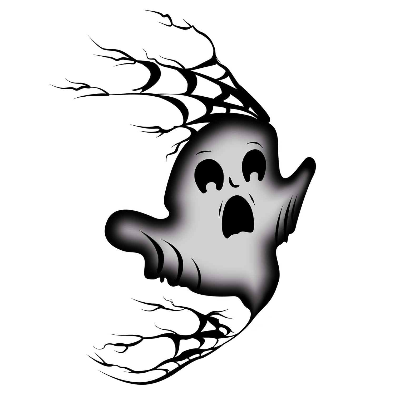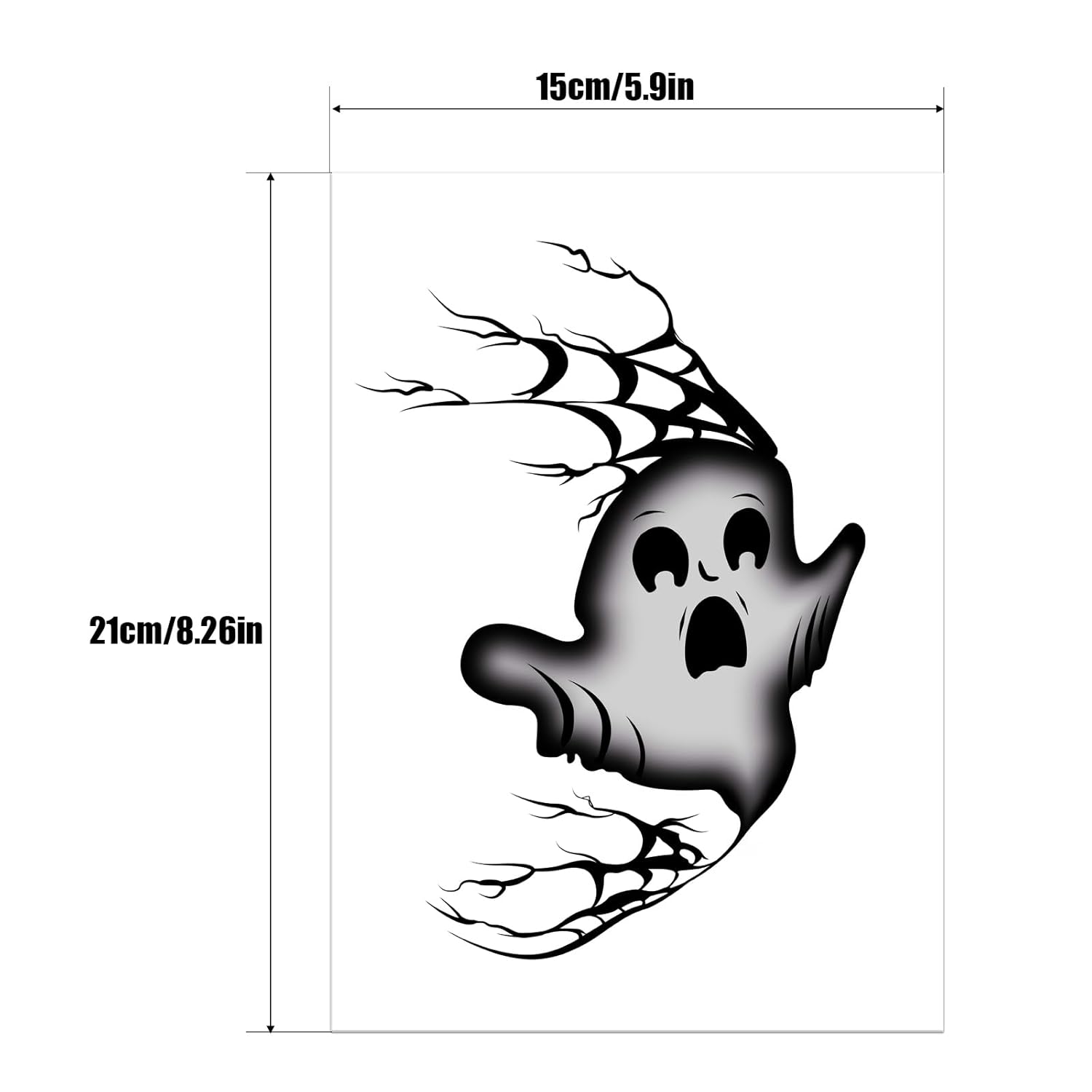 - 【Product Design】Captivating spooky ghost with big hollow eyes, an open scared mouth, and twisting branch-like accents extending from its body. The eerie vines and distressed expression create a hauntingly fun Halloween face stickers effect that suits all styles.