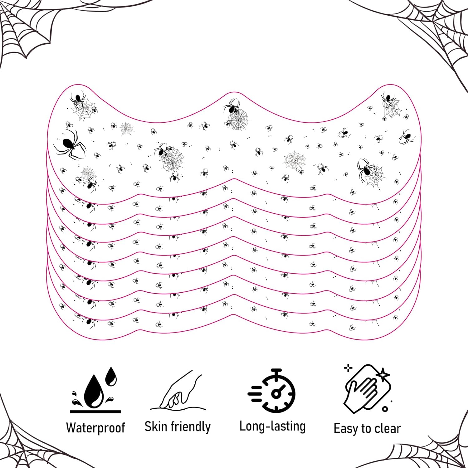 - 【Product Design】Embrace the darkness with our intricately designed black spider and spiderweb patterns. This unique collection of temporary freckle tattoos creates a stunning, creepy-crawly effect across your nose and cheeks. The designs are sharp and clear, arranged to mimic natural freckle placements but with a gothic twist, making them the perfect accessory for a truly memorable impression.