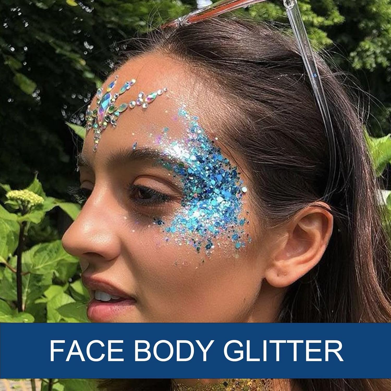 - 【All Skin Types & Use for Many Occasions】This body glitter caters to all skin types. Versatility is glitter’s forte—effortlessly apply it to enhance full - face makeup, add a touch of sparkle to your body, hair, lip, or use it to embellish costumes. Whether you're celebrating a birthday, joining in festive holidays, dancing at music festivals, or attending any special event, this glitter gel seamlessly adapts to various application needs.