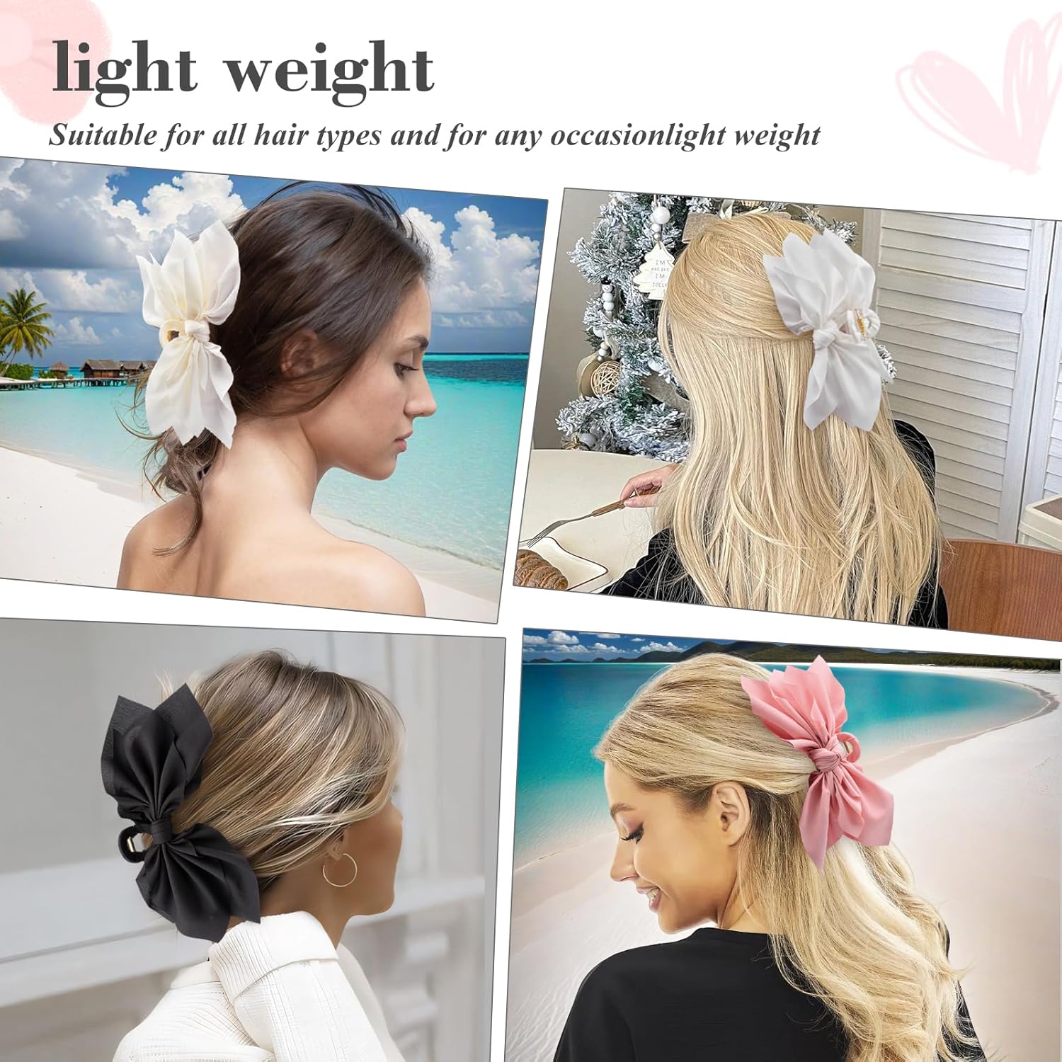 - Endless Hair Possibilities: Whether you're attending a formal event, going for a casual outing, or simply want to add some flair to your everyday look, our bow claw clips are a versatile accessory that can be used to create various hairstyles. They also make great gifts for girls, women, and teens.