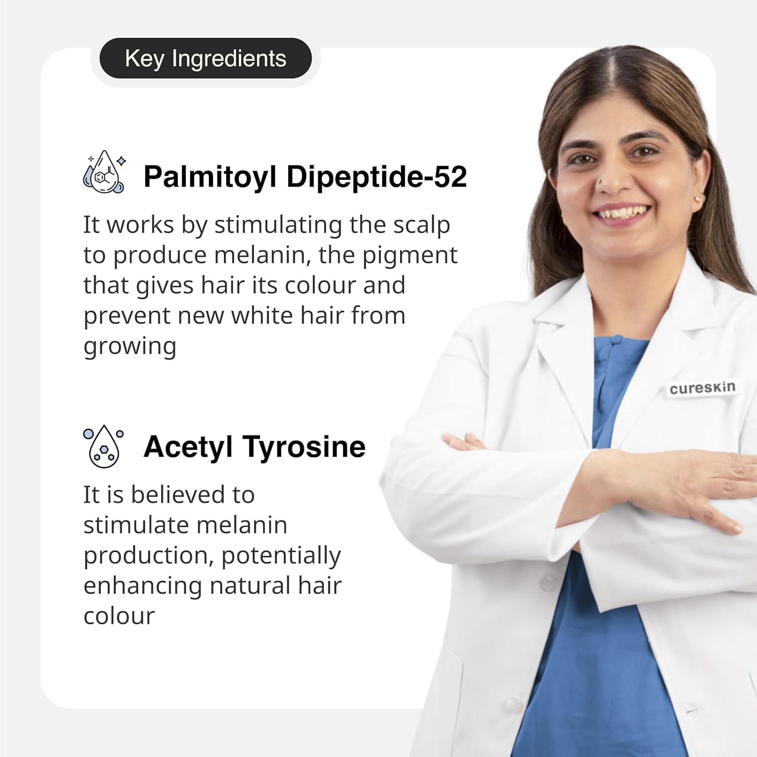 - Product Benefits : Stimulates melanin production at the root level to restore natural hair colour. Strengthens hair follicles to slow down the greying process. Stimulates melanin production at the root level to restore natural hair colour. Strengthens hair follicles to slow down the greying process.