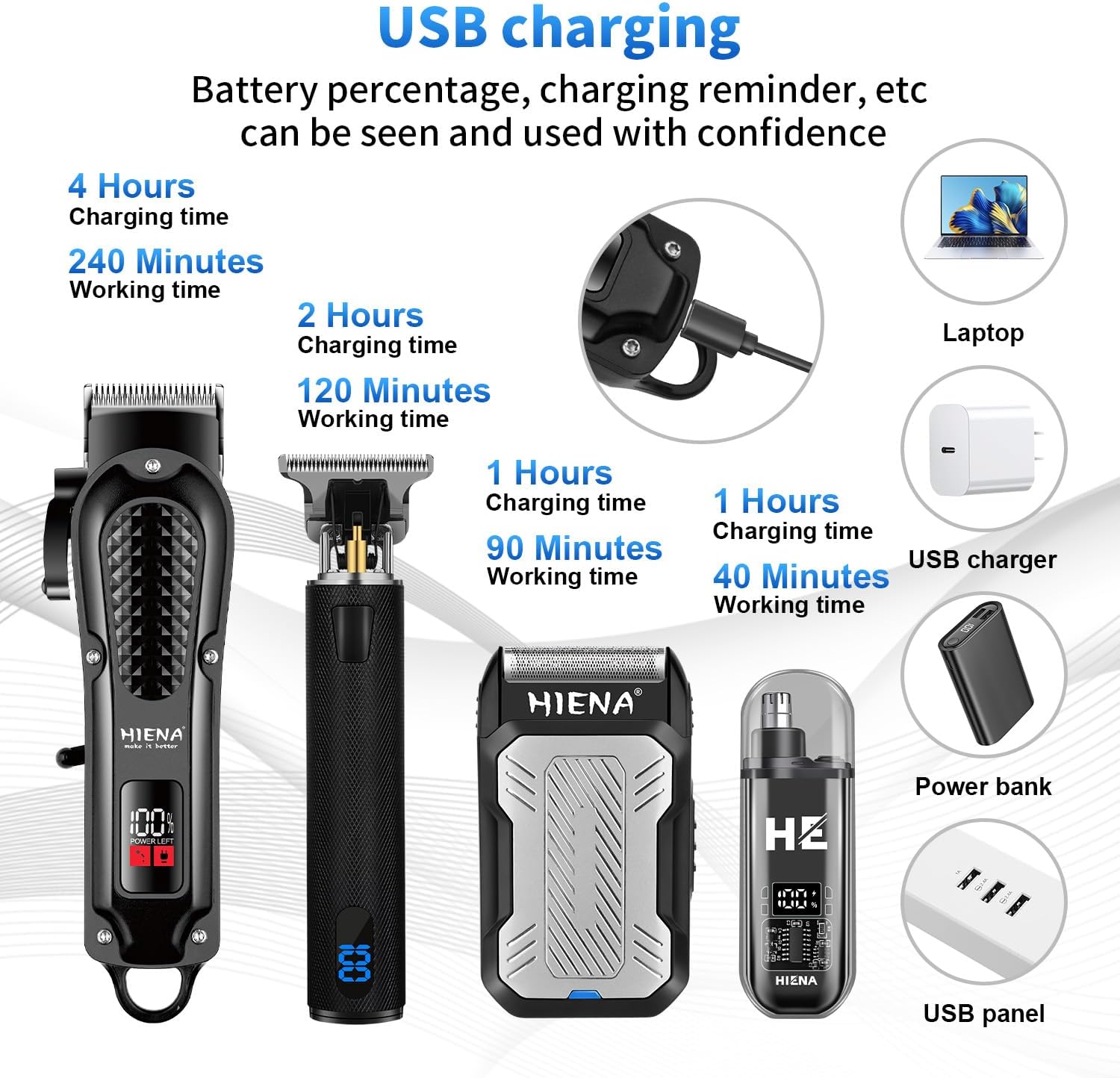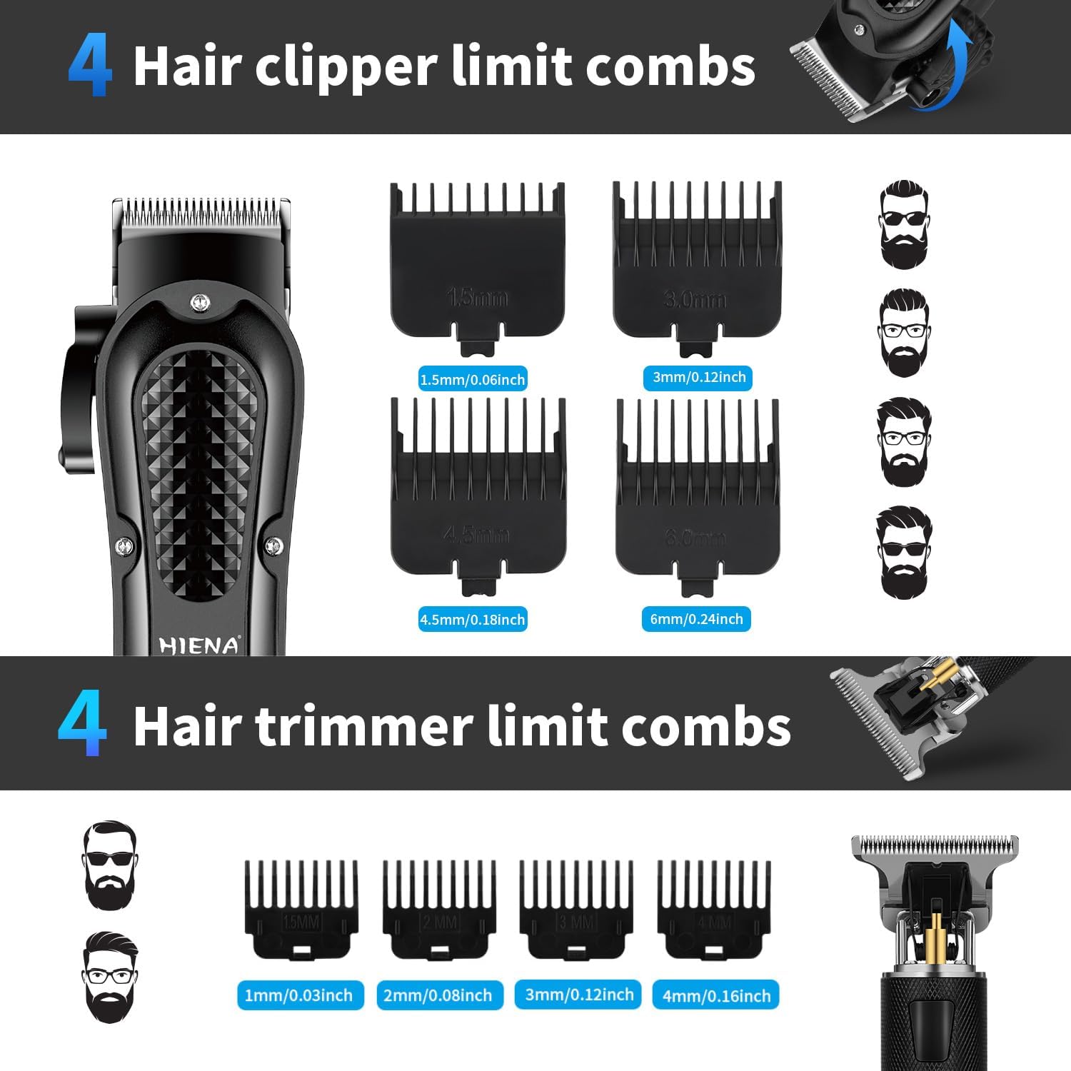 HIENA PRO Professional Cordless Hair Clippers for Men, T-Blade Beard Trimmer & Foil Shaver & Nose Hair Trimmer Set, Barber Clipper Hair Cutting Grooming Kit