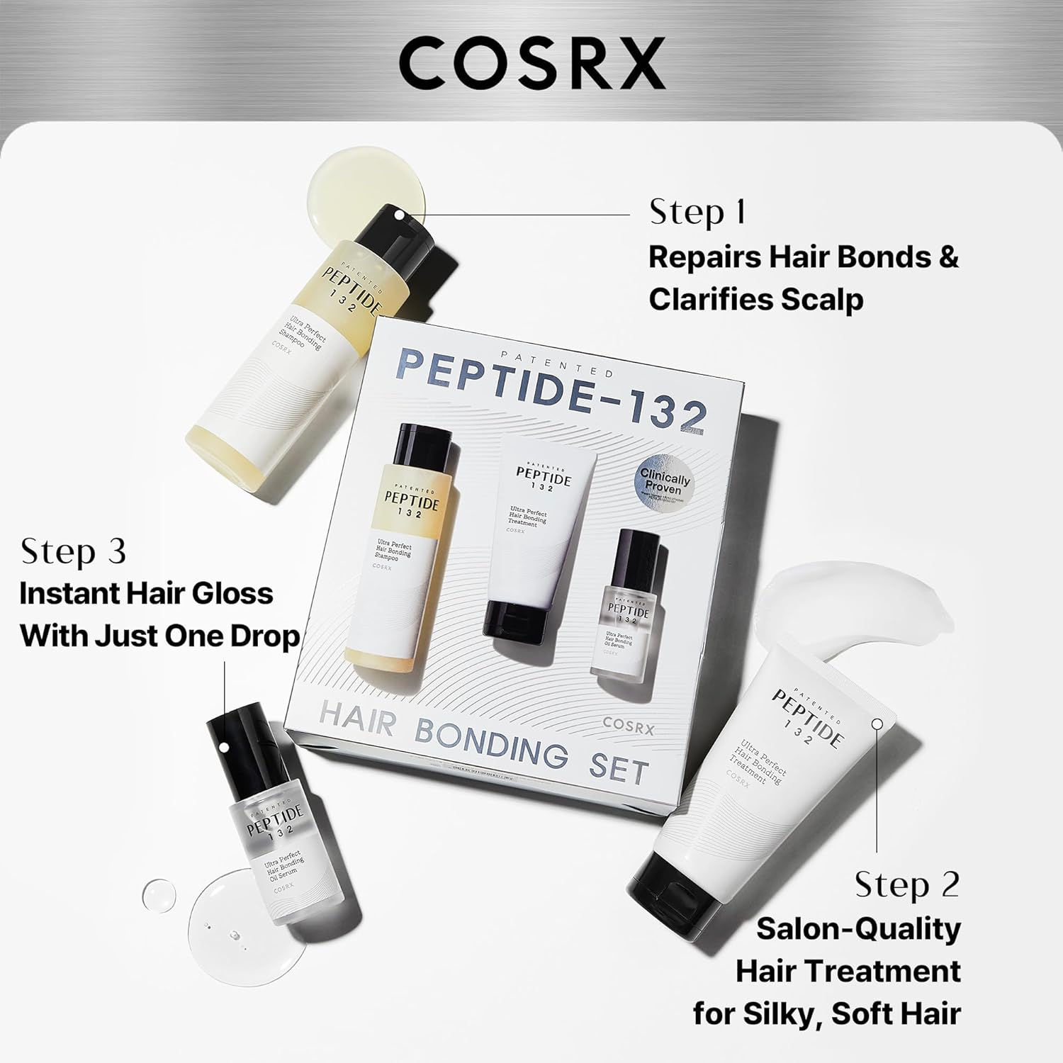 COSRX PEPTIDE 132 Hair Care Set - Bonding Shampoo, Treatment & Oil Serum, Bond Repair Treatment Hair Gift Set for Damaged, Dry Hair, Scalp Treatment for Dandruff, Dry & Itchy Scalp, Stocking Stuffers