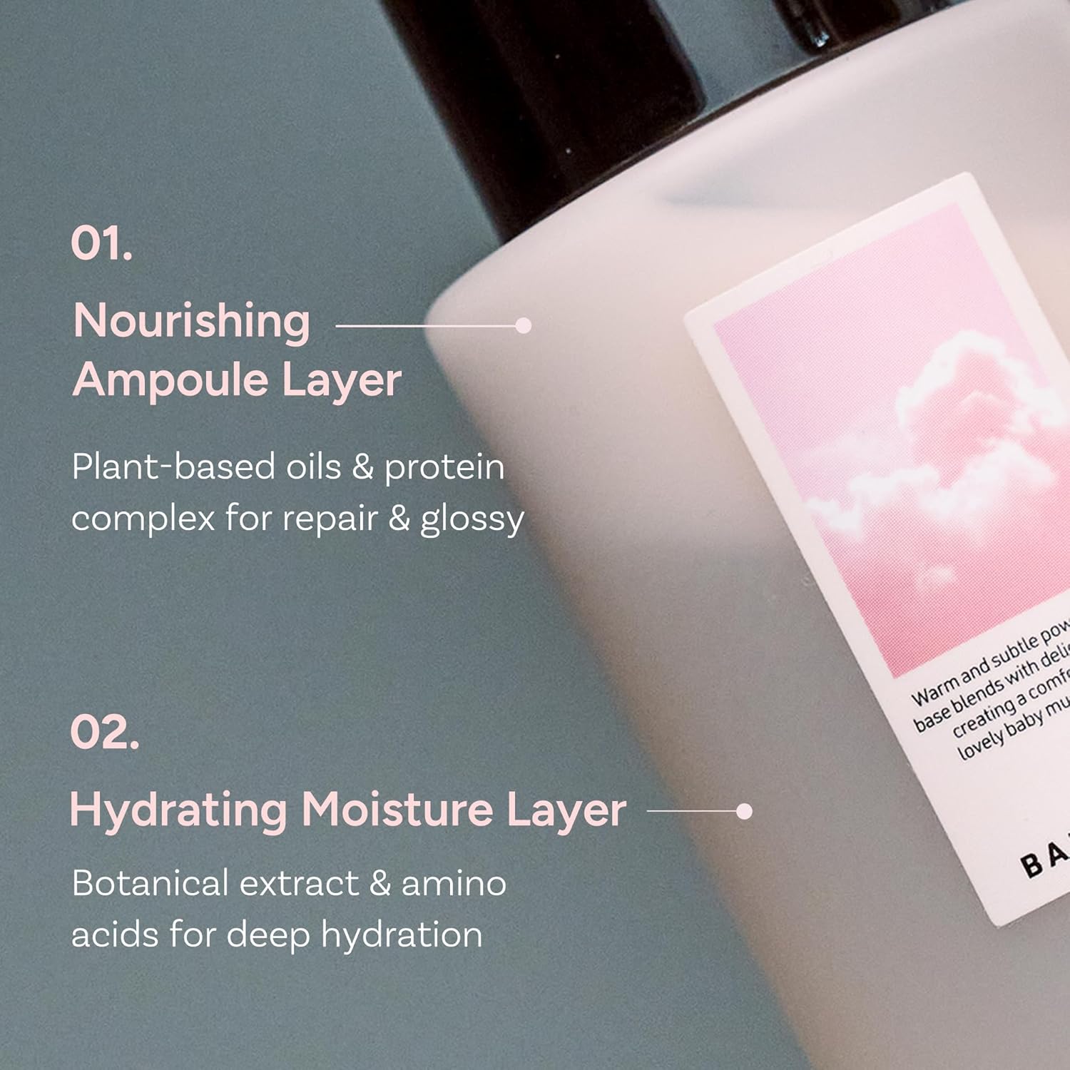 Korean Hair Serum Mist – Argan Oil & Silk Protein Ampoule for Nourishing, Frizz Control & Glass Hair Shine – Baby Musk, 100ml / 3.38 fl oz