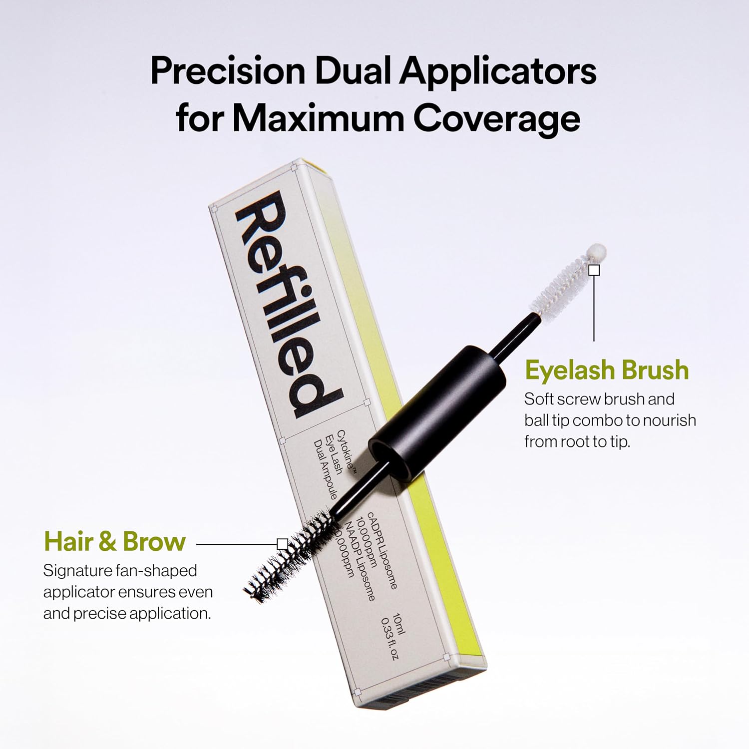 - DUAL‑ENDED APPLICATOR TARGETS BOTH LASHES & BROWS: A slim, eyeliner‑style brush lays down serum precisely at the upper and lower lash roots, and a micro‑detail tip lets you dot sparse brow tails or tight spaces between individual lashes. No dripping, no waste—just controlled, mess‑free dosing in seconds. The compact 10 ml tube travels easily so you never miss a nightly application, the key to consistent results.