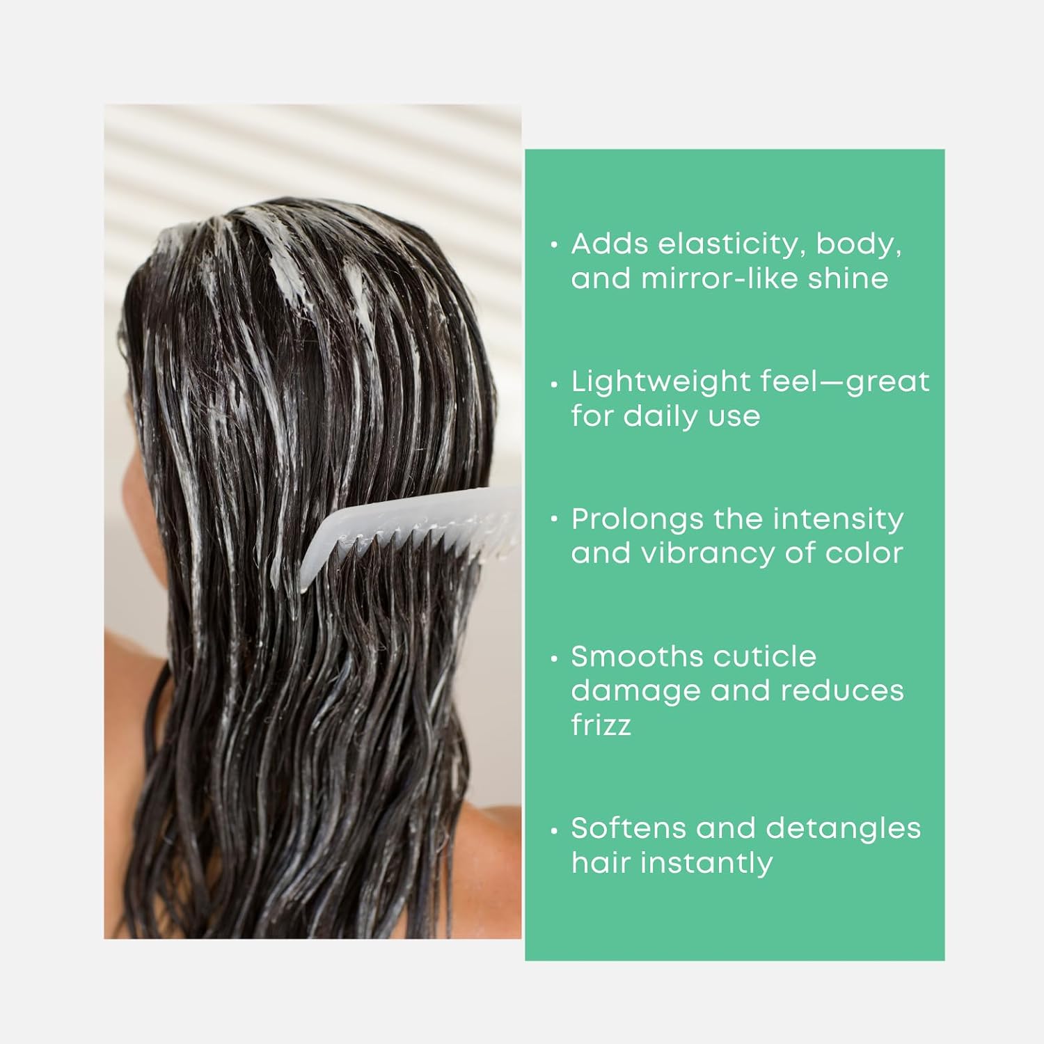 - Product Benefits : Adds elasticity, body, and mirror-like shine, Lightweight feel—great for daily use, Prolongs the intensity and vibrancy of cosmetic color, Smooths cuticle damage and reduces frizz, Softens and detangles hair instantly Adds elasticity, body, and mirror-like shine, Lightweight feel—great for daily use, Prolongs the intensity and vibrancy of cosmetic color, Smooths cuticle damage and reduces frizz, Softens and detangles hair instantly