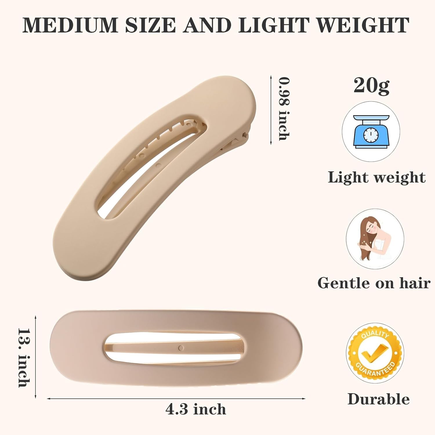 - Size&Colors:The flat hair clips size is 4.3*1.3 inches, they are lightweight and portable to carry for travel,each claw clips set comes in 5 matte colors and you can choose different colors to match different outfits, the mate hair clips also fits perfectly with your purse bag clutch