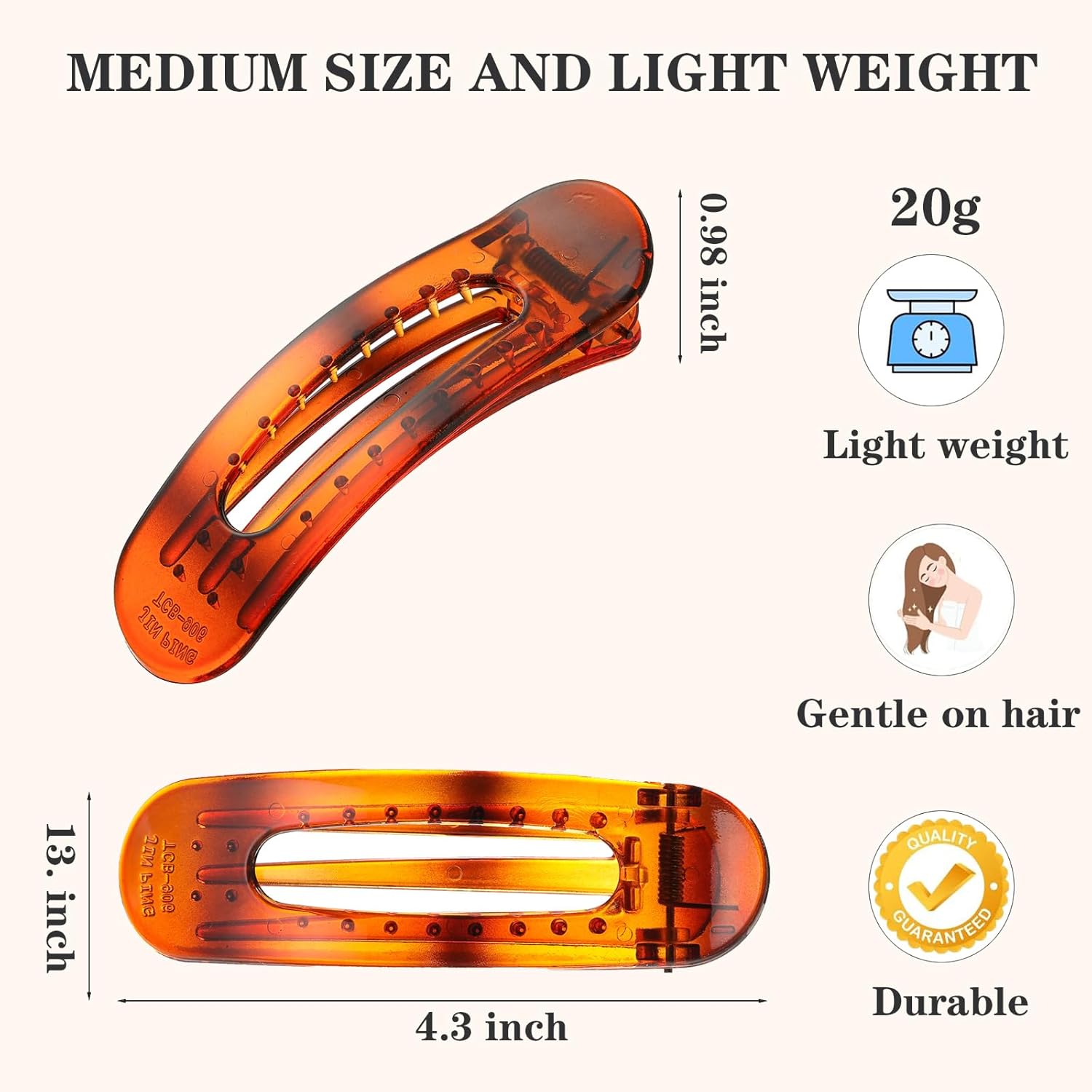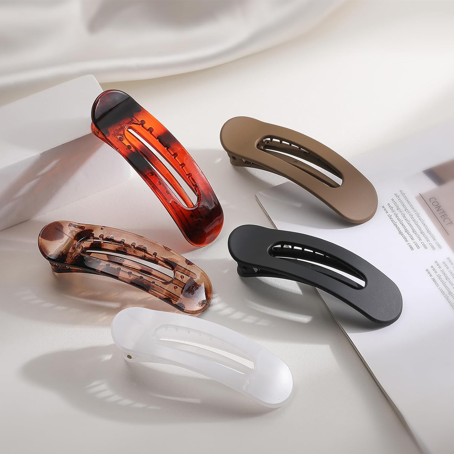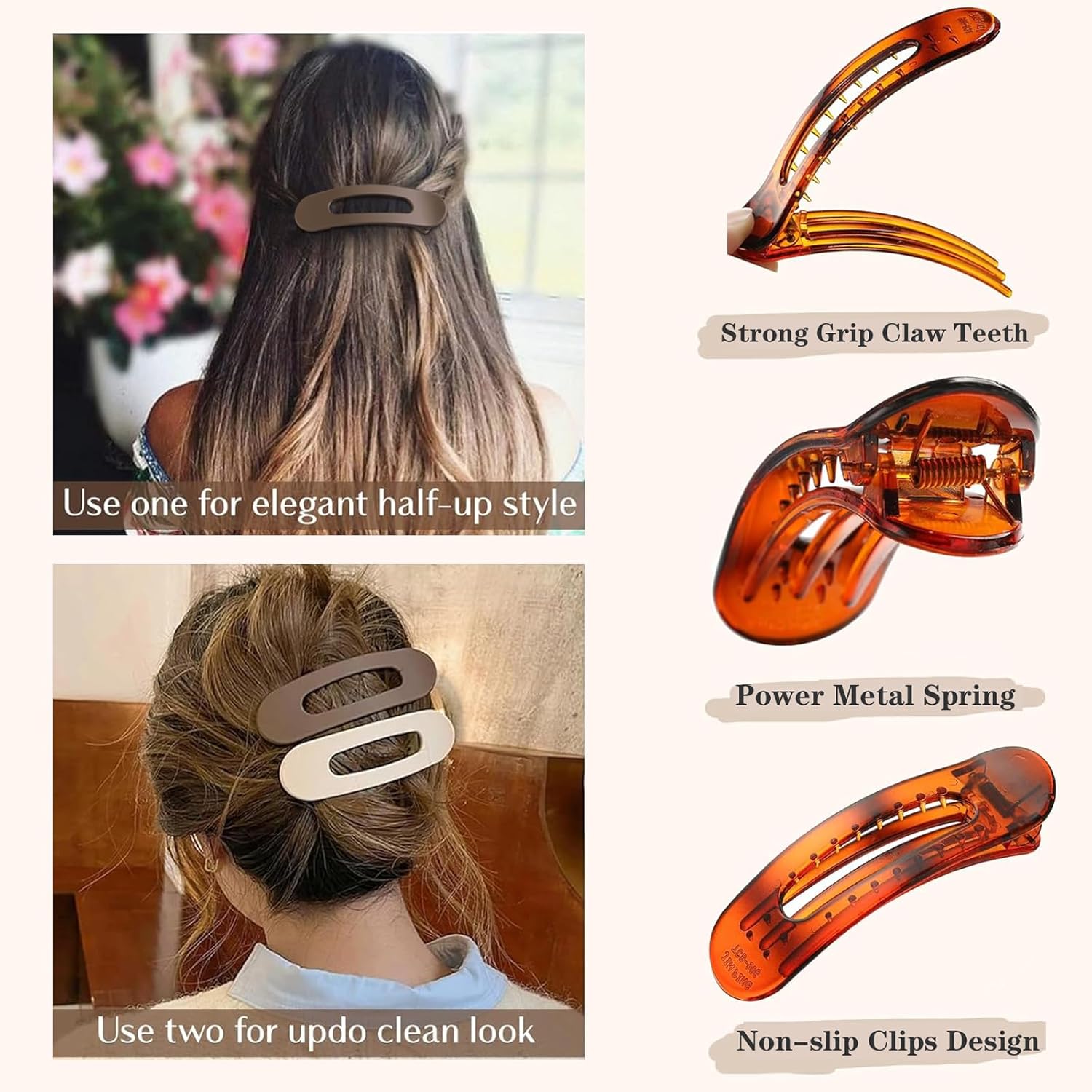 - Size&Colors:These no crease flat hair clips size is 4.3*1.3 inches, they are lightweight and portable to carry for travel,each claw clips set comes in 5 matte colors and you can choose different colors to match different outfits, the mate hair clips also fits perfectly with your purse bag clutch