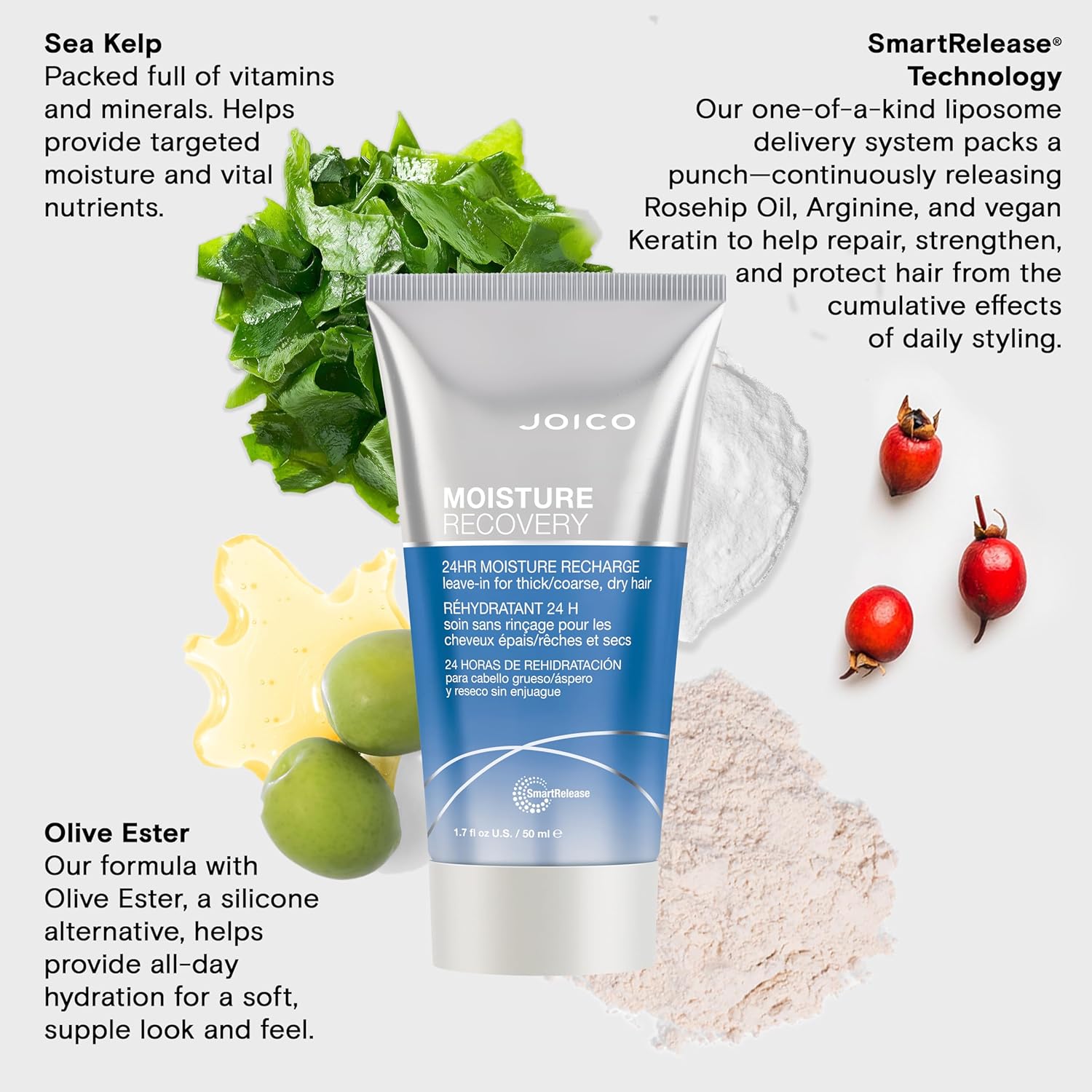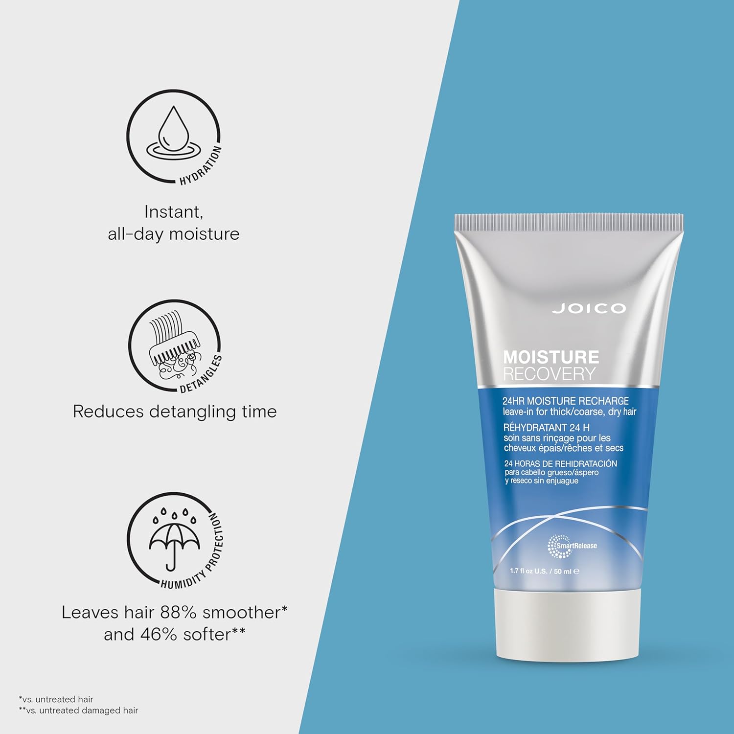 - Joico Moisture Recovery 24 Hour Moisture Recharge Leave-In delivers intense moisture from the moment you apply it, and provides protection at every turn: glide-worthy detangling, and long lasting frizz protection that take you through the day.