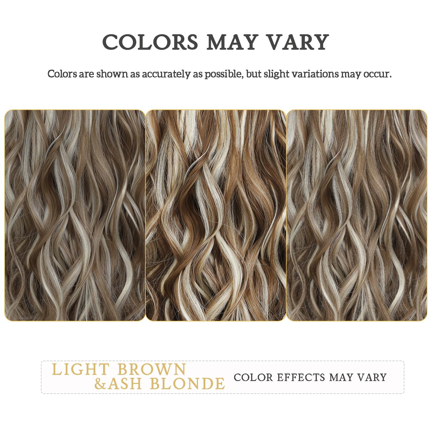 Hair Extensions Clip ins, 6 PCS Wavy Extensions, Brown with Blonde Highlights Thick Hairpieces, Blends Well Hair Extensions (24Inch, 6PCS, Brown with Blonde Highlights)