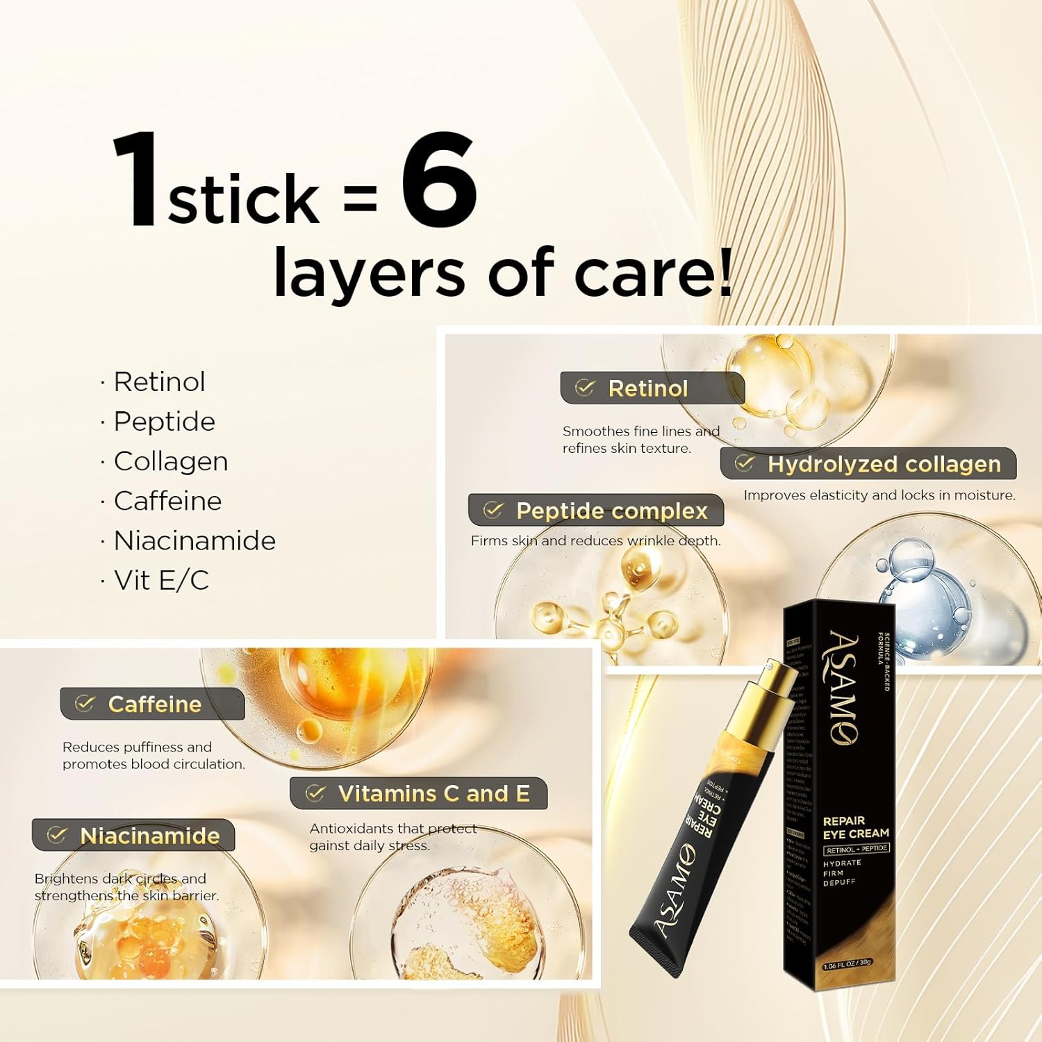 ASAMO Retinol Eye Cream – Retinol and Peptides for Fine Lines, Puffiness,Anti Aging, and Under-Eye Shadows, Eye Care Daily Wrinkle Cream,1.06 fl.oz
