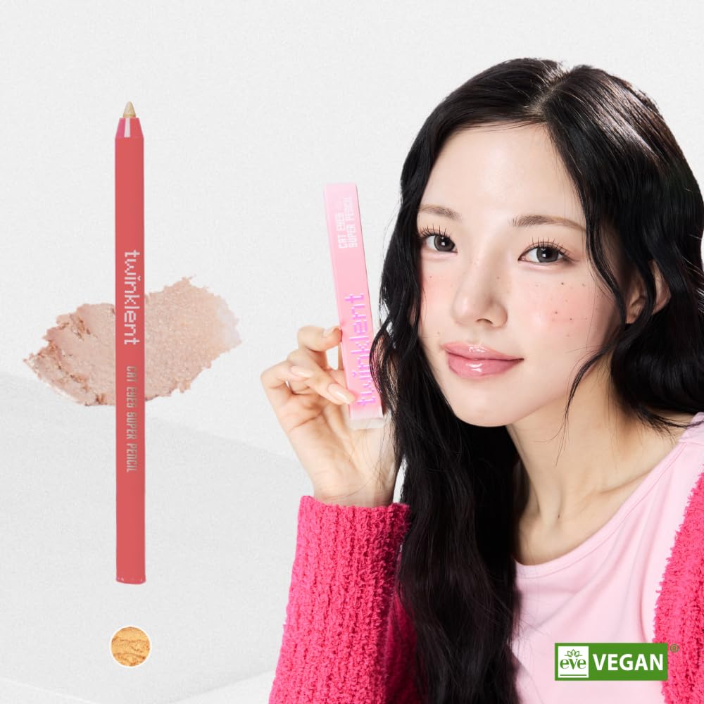 TWINKLENT Cat Eyes Super Pencil – 24-Hour Long-Lasting Waterproof Gel Eyeliner, Multipurpose Vegan Eye Makeup, Built-in Sharpener, 6 Shades (5-Twinkle Gold)