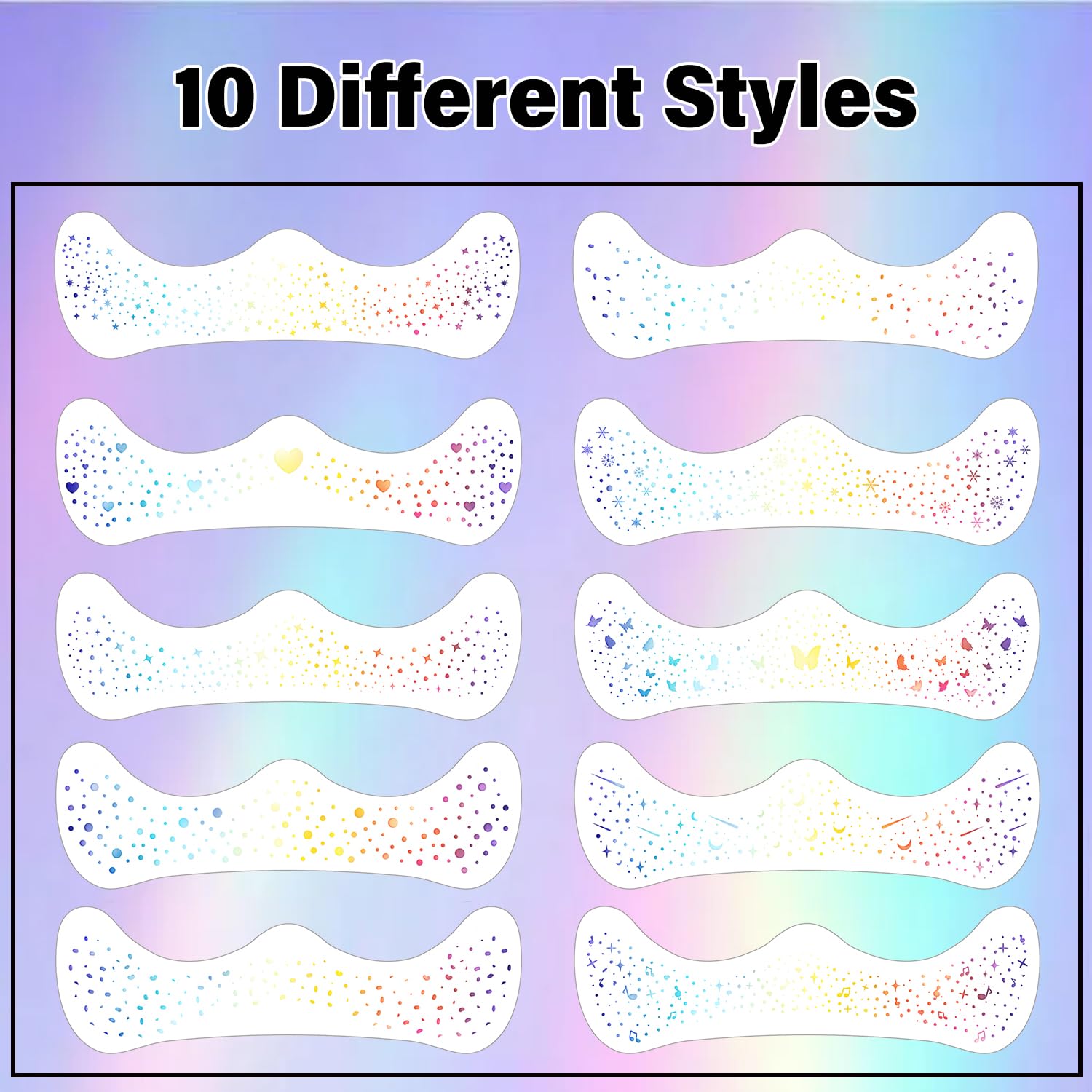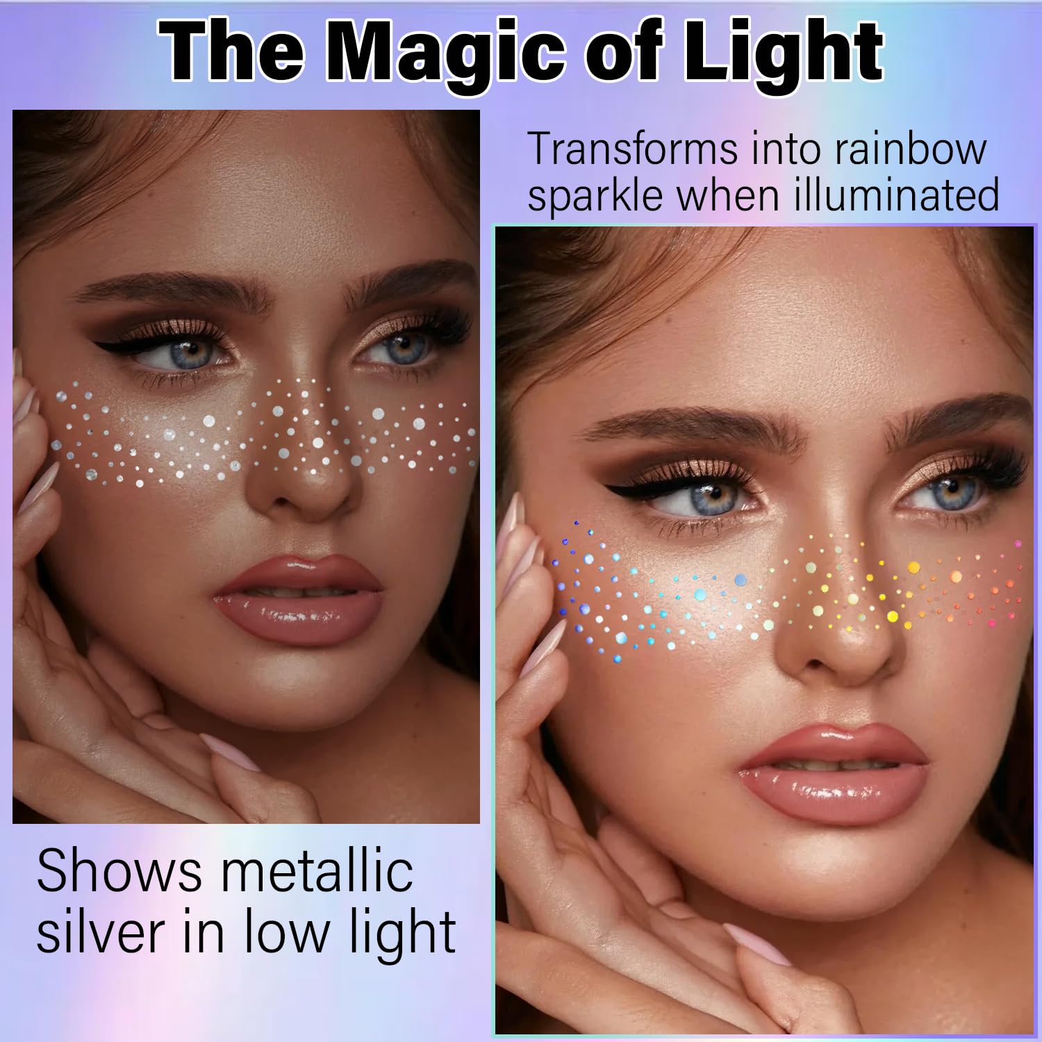 - Holographic Multichrome Glitter Freckles: These 10 defferent glitter patches allow you to create a stunning, glittery look on your face for special occasions or festivals. Perfect for wearing in Halloween, Christmas, birthday parties, concerts, dances and shows!