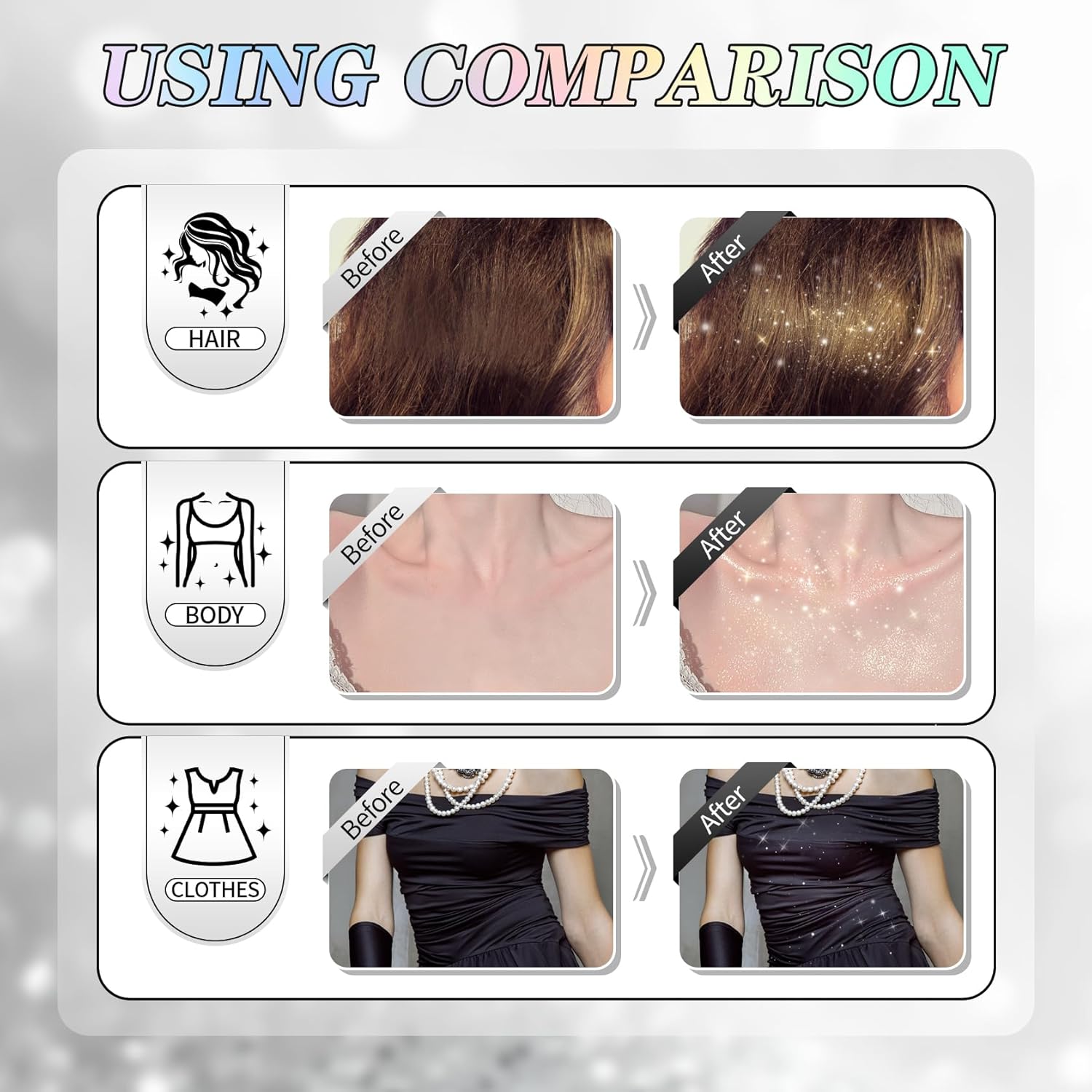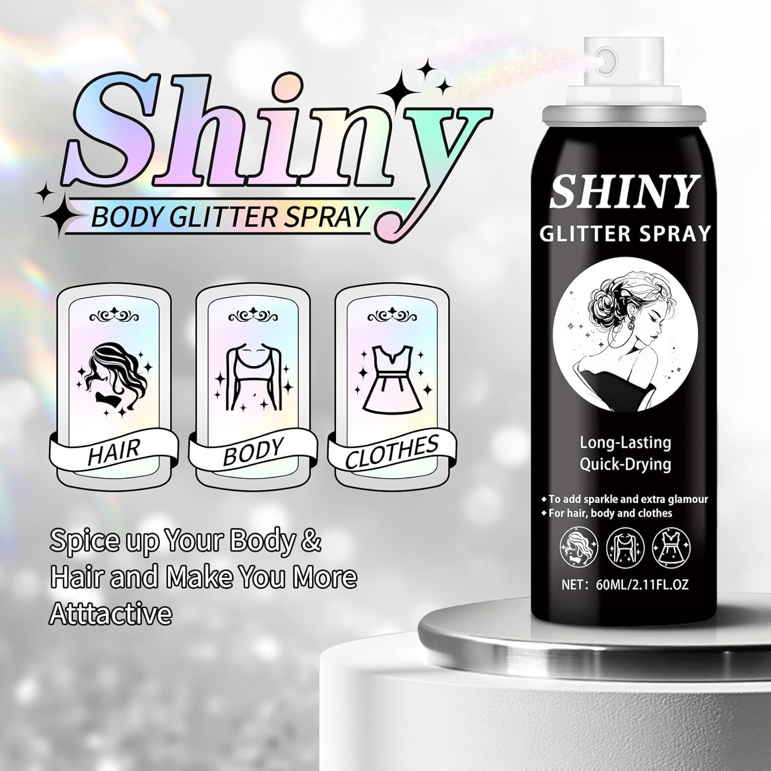 - 【Easy to Use】Shake well before use to ensure even distribution of the glitter.Spray 6-8 inches from the skin,allowing the glitter to adhere gently for a unique sparkling effect