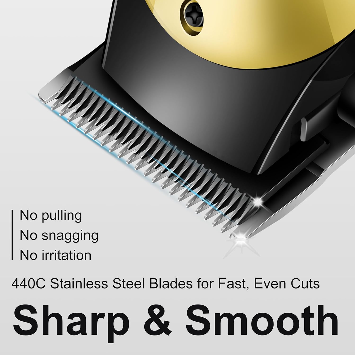 - ALL-IN-ONE PROFESSIONAL SET!2-in-1 clippers and trimmers set. Experience salon-grade performance at home! The set features a professional Hair Clipper (6800 RPM)and a precision Hair Trimmer (7000 RPM), both equipped with high-strength ultra-sharp titanium stainless steel blades(440C),passing 1,100-hour durability tests (3x industry standard). Engineered to cut thick/curly hair like a hot knife through butter,with no snagging/pulling.Gentle enough for kids, precise enough for pros.