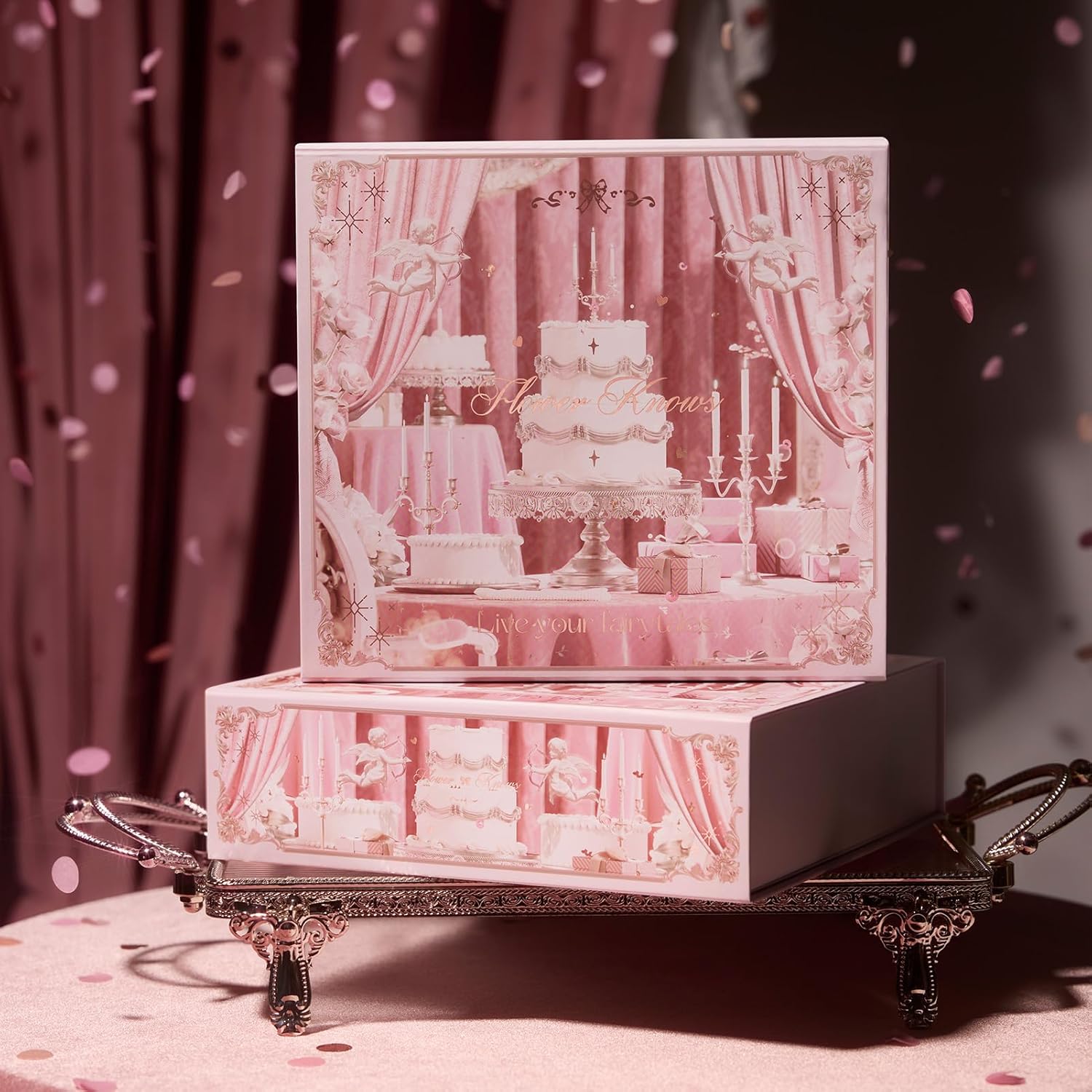 Flower Knows Strawberry Cupid 4-Piece Makeup Gift Box Set-Fairy Pink Moments Set, Lip Cream + Solid Perfume + Pocket Mirror + Folding Gift Box(01 Fairy Pink Moments Set)