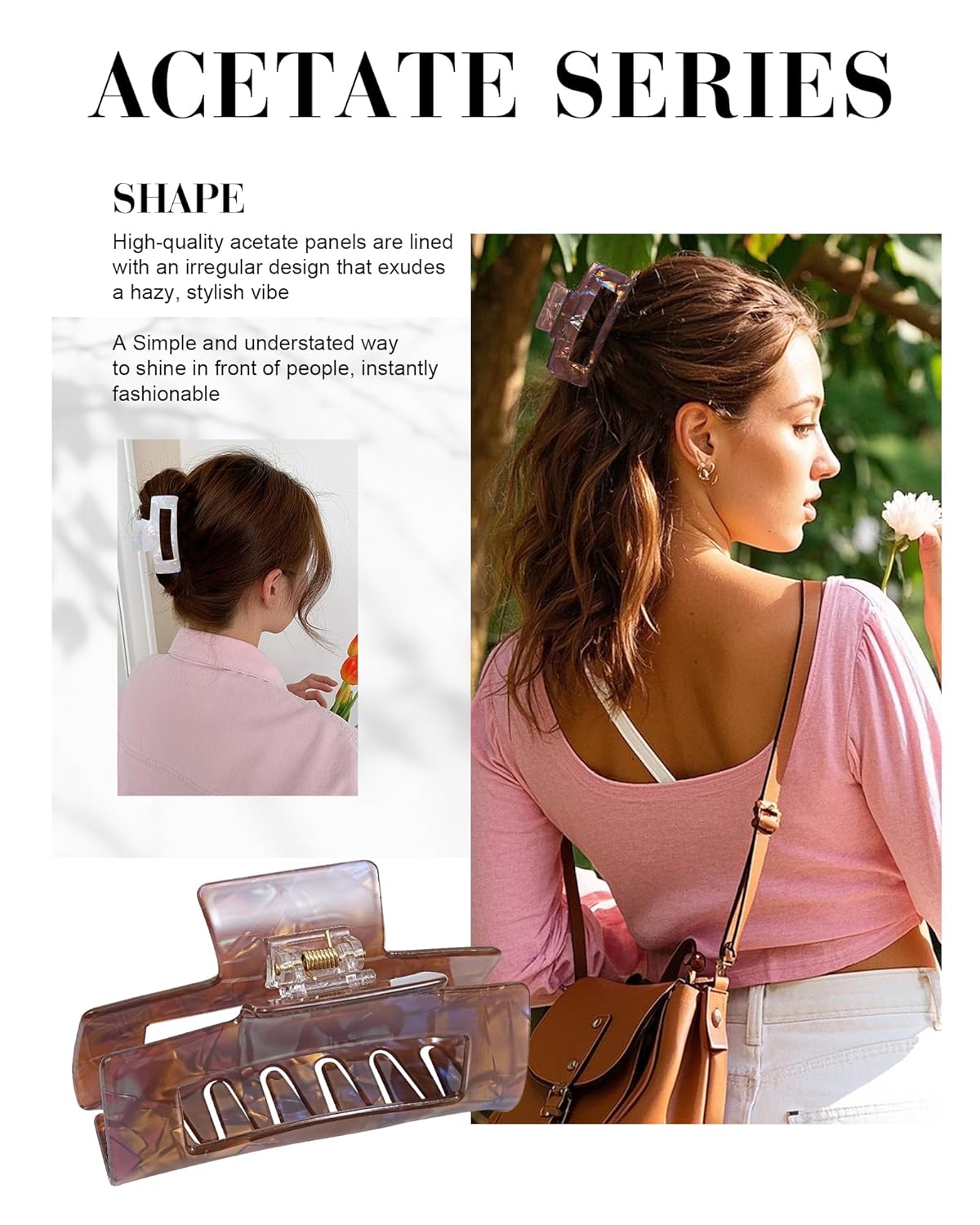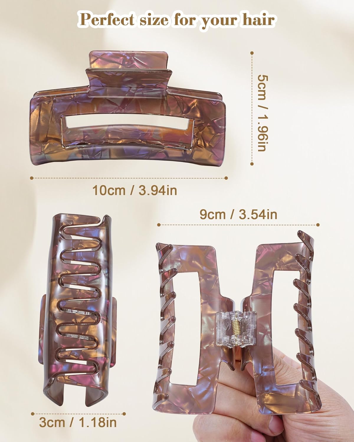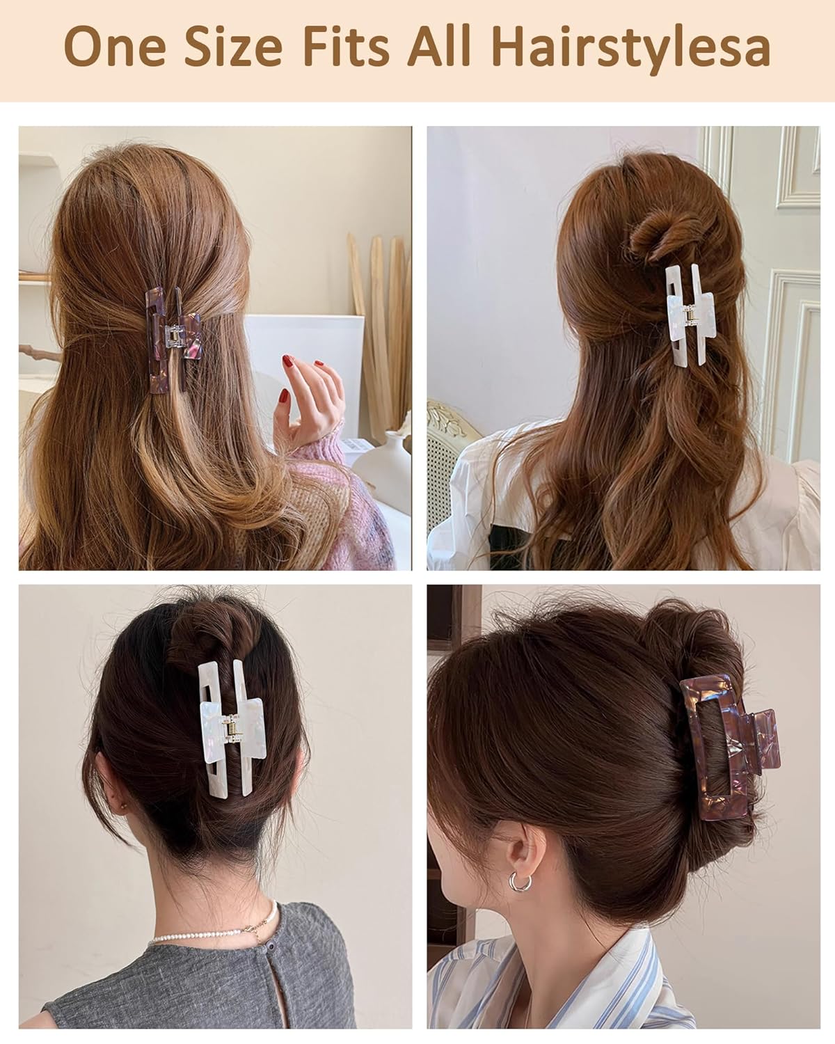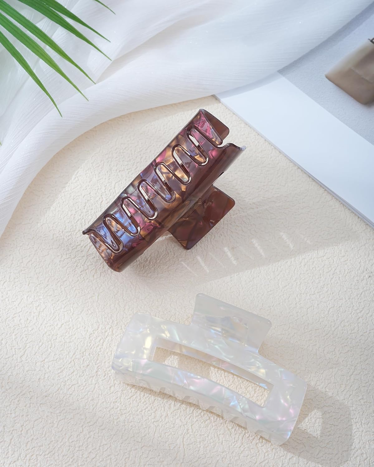 HOKEMP 2 Pack Acrylic Hair Claw Clips for Women, 3.93 Inch Large Non-Slip Strong Hold Rectangle HairClip for Thin Thick Hair (Color 1)