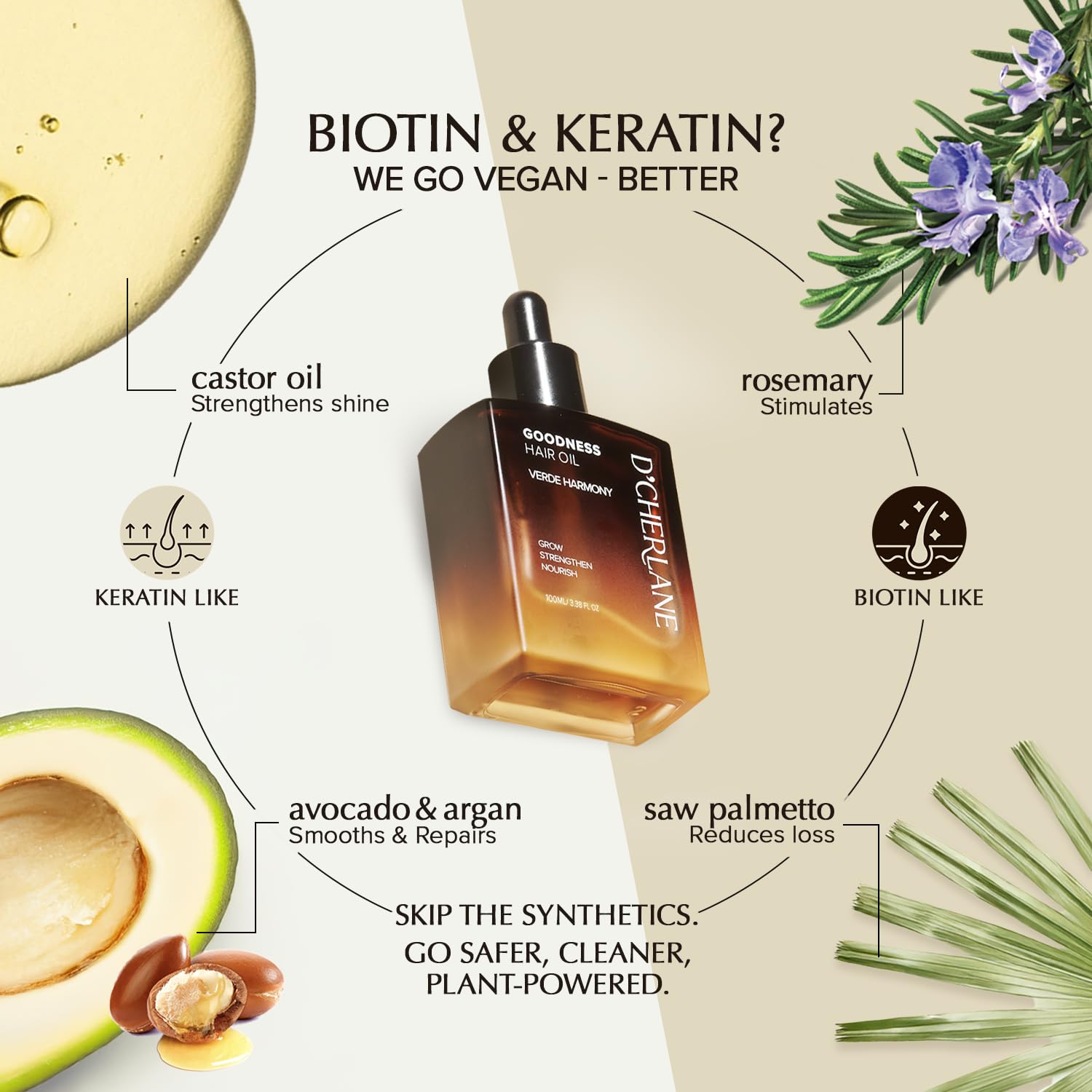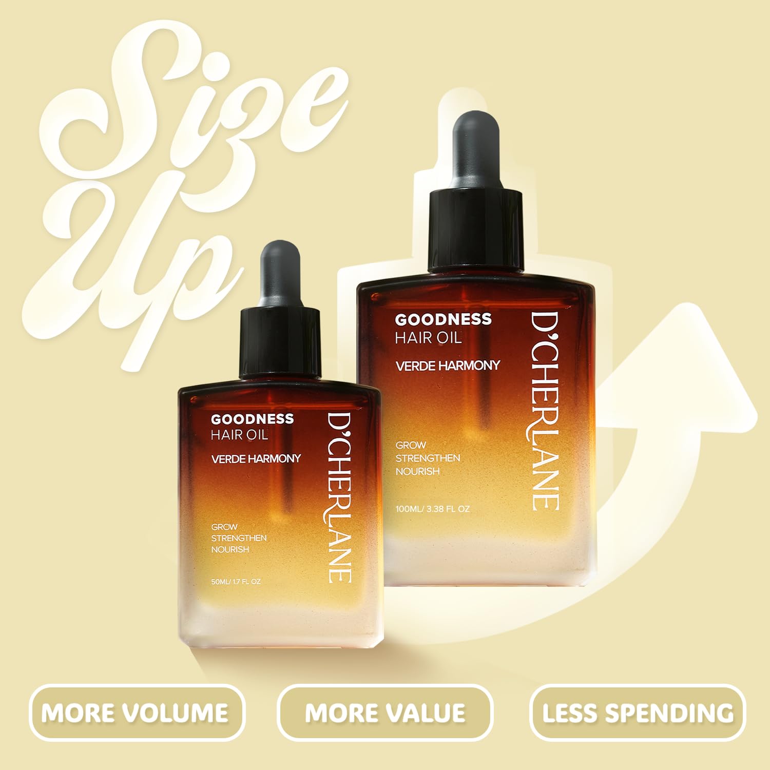 D'Cherlane Hair Growth Oil – Scalp Treatment with Rosemary, Argan, Coconut & Castor Oil Organic | Lightweight, Non-Greasy Formula for Fuller, Thicker, Stronger Strands | For All Hair Types
