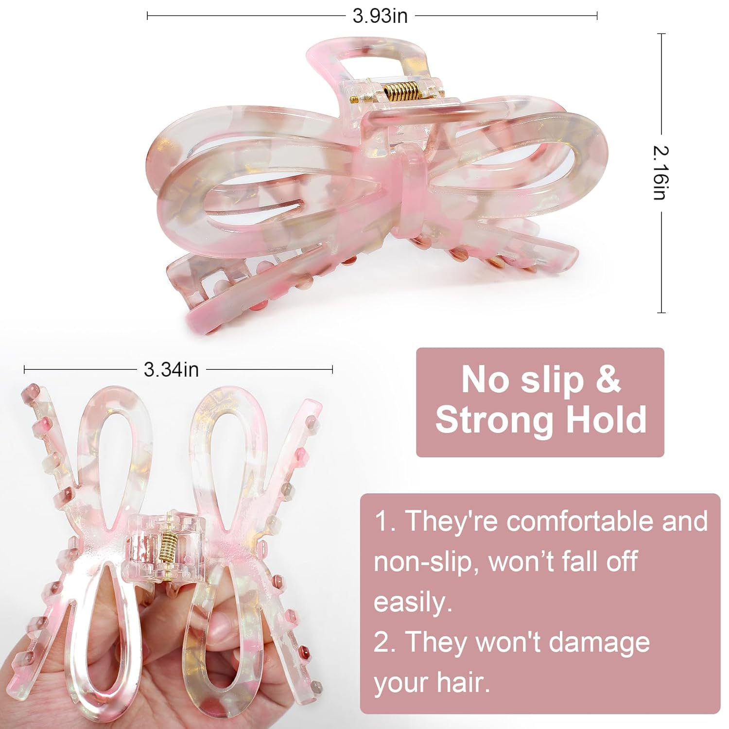 Jayongnee 3 PCS Bow Hair Claw Clips for Women - Non-Slip Hair Clamps for Thin or Thick Hair - Cute Butterfly Hair Accessories for Women Girls - Elegant Hair Styling Accessories (bow 1, large)