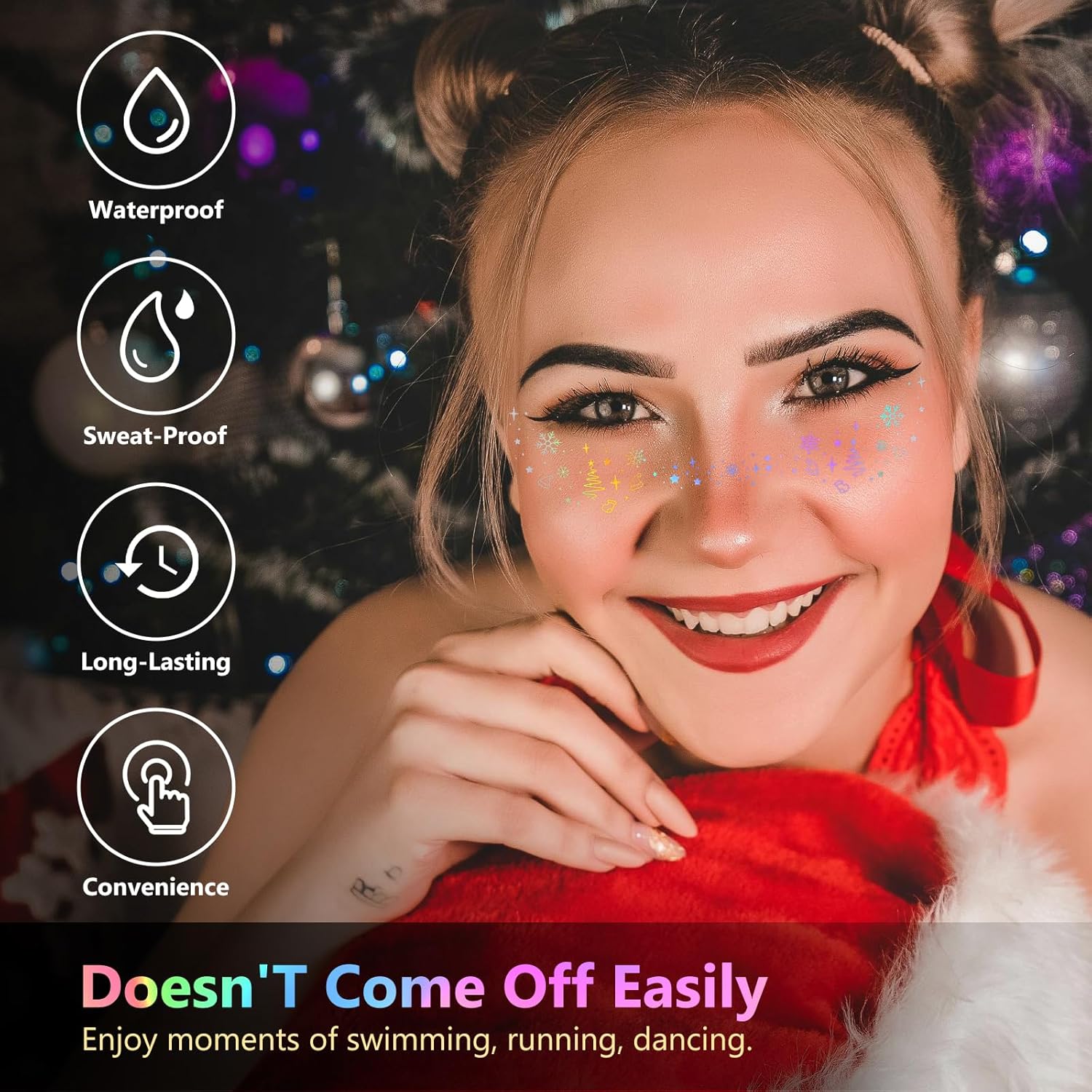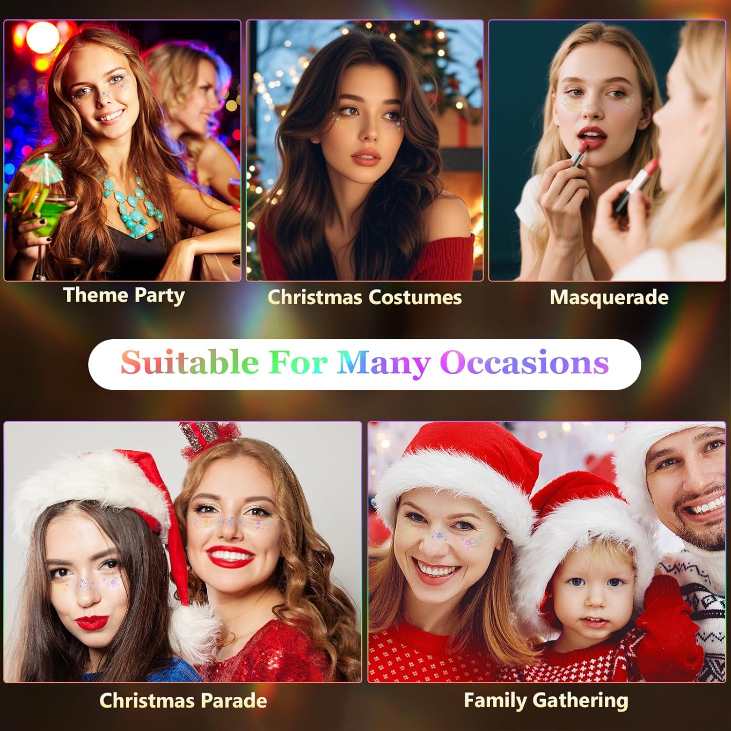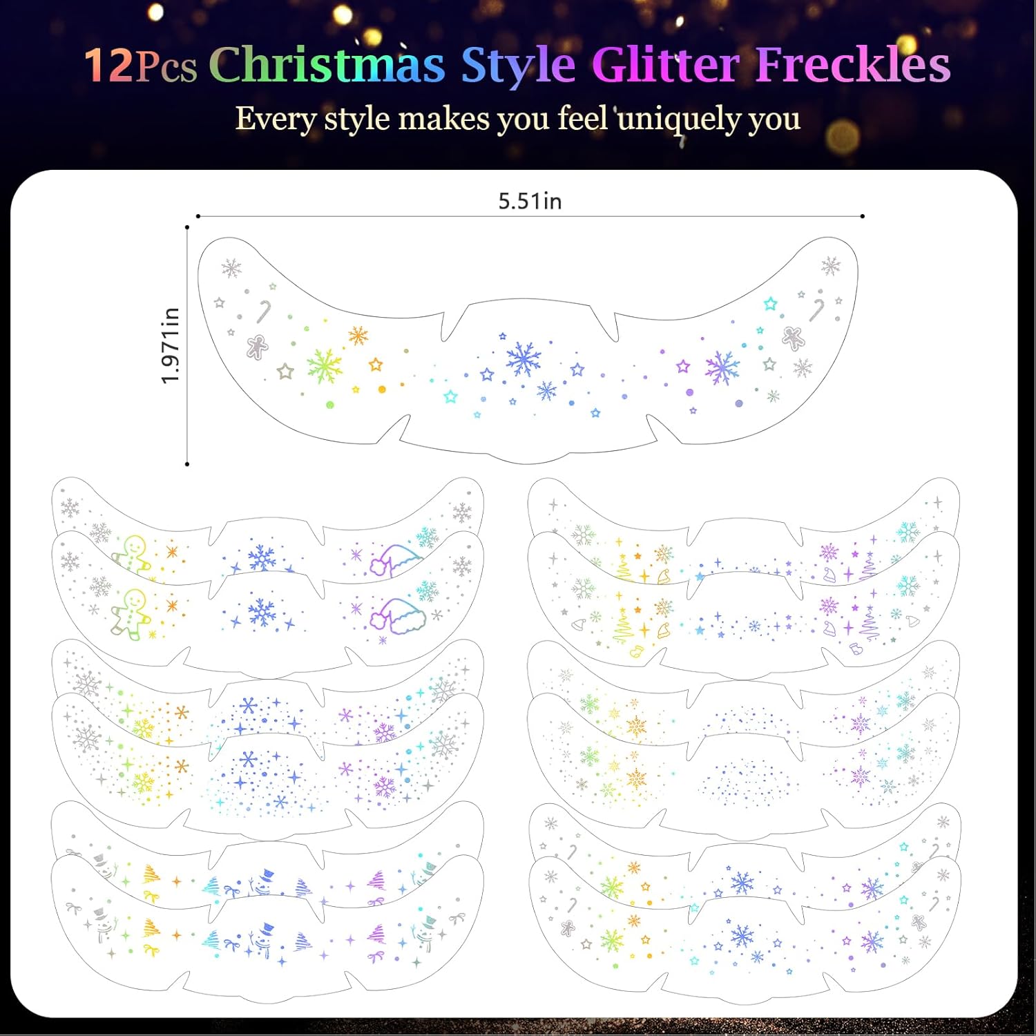 - MULTIPLE STYLES: Our Christmas glitter freckles face tattoo contain 12 pcs. It's 6 styles of Christmas holographic multichrome rainbow freckles patches. Multiple styles giving you countless ways to sparkle. Whether you’re going for a subtle shimmer or a statement-making glow, these sparkle freckles for women let you customize your style for any occasion