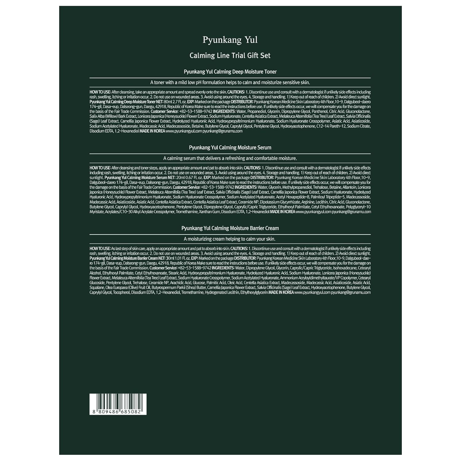 Pyunkang Yul PKY Calming Trial Gift Set Instantly Calms Sensitive Skin, Exfoliating Toner, Soothing Serum, and Facial Skin Hydrating Cream, Vegan, Korean Skincare (3-item set)