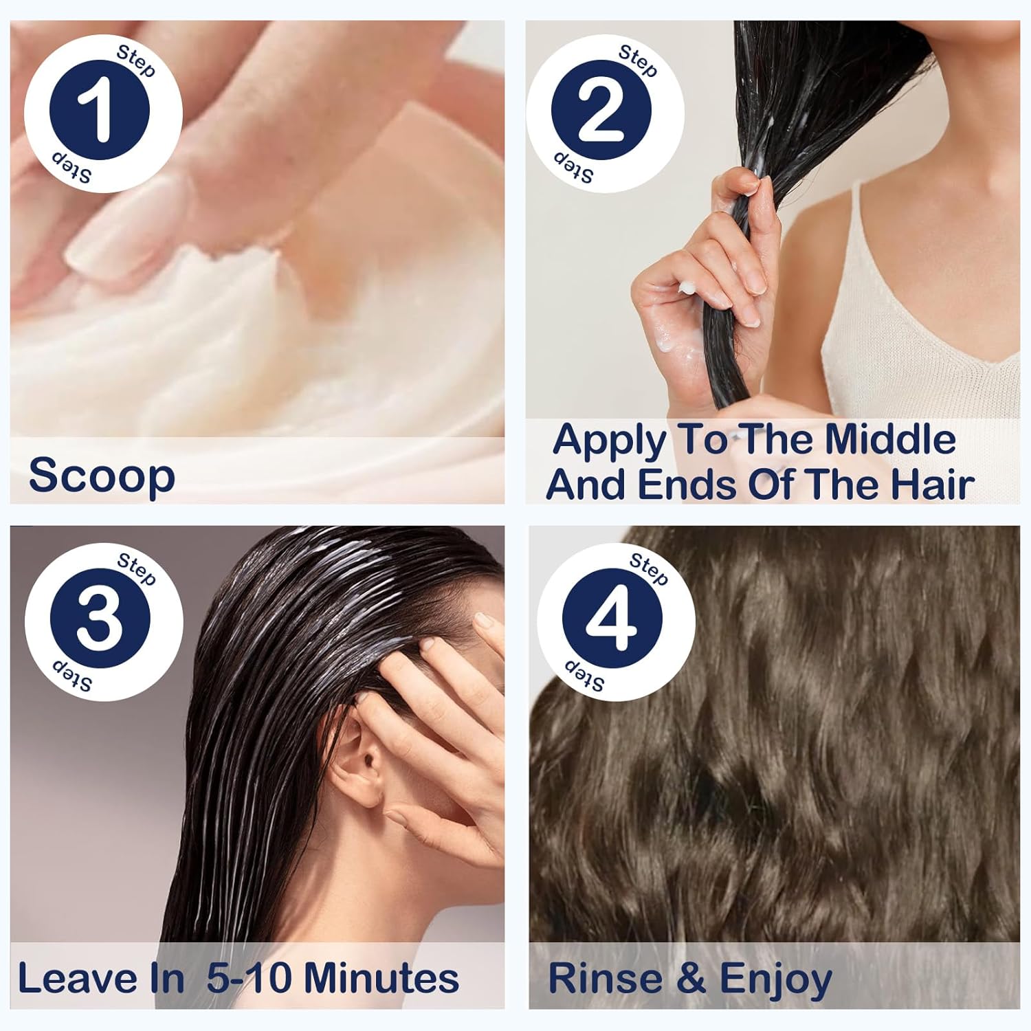 - Salon-Quality Results, Effortlessly at Home: Achieve salon-worthy results right in the comfort of your home with our easy-to-use hair mask! Experience an intense moisture recharge that locks in hydration, transforming dry, lifeless hair into soft, supple, and plumped locks. This versatile hair mask is perfect for busy individuals seeking professional-grade shine and strength with minimal effort.