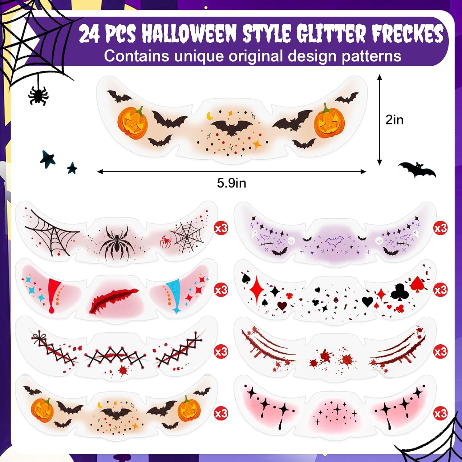 - HALLOWEEN FRECKLE PATCHS: This set includes 24pcs Halloween theme freckle stickers, there are a total of 8 different patterns for you to choose from. They use safe plant-based ingredients that won't cause any harm to your skin. (We still recommend conducting a skin test before use)