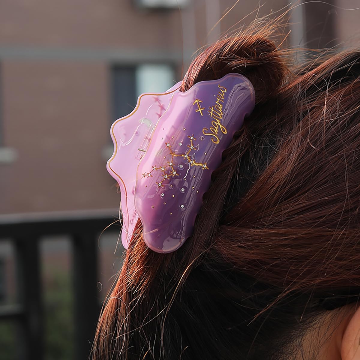Fantasy Sagittarius Sign Hair Clips,Novelty Acetate Claw Clip,Zodiac Hair Clips for Women,Purple