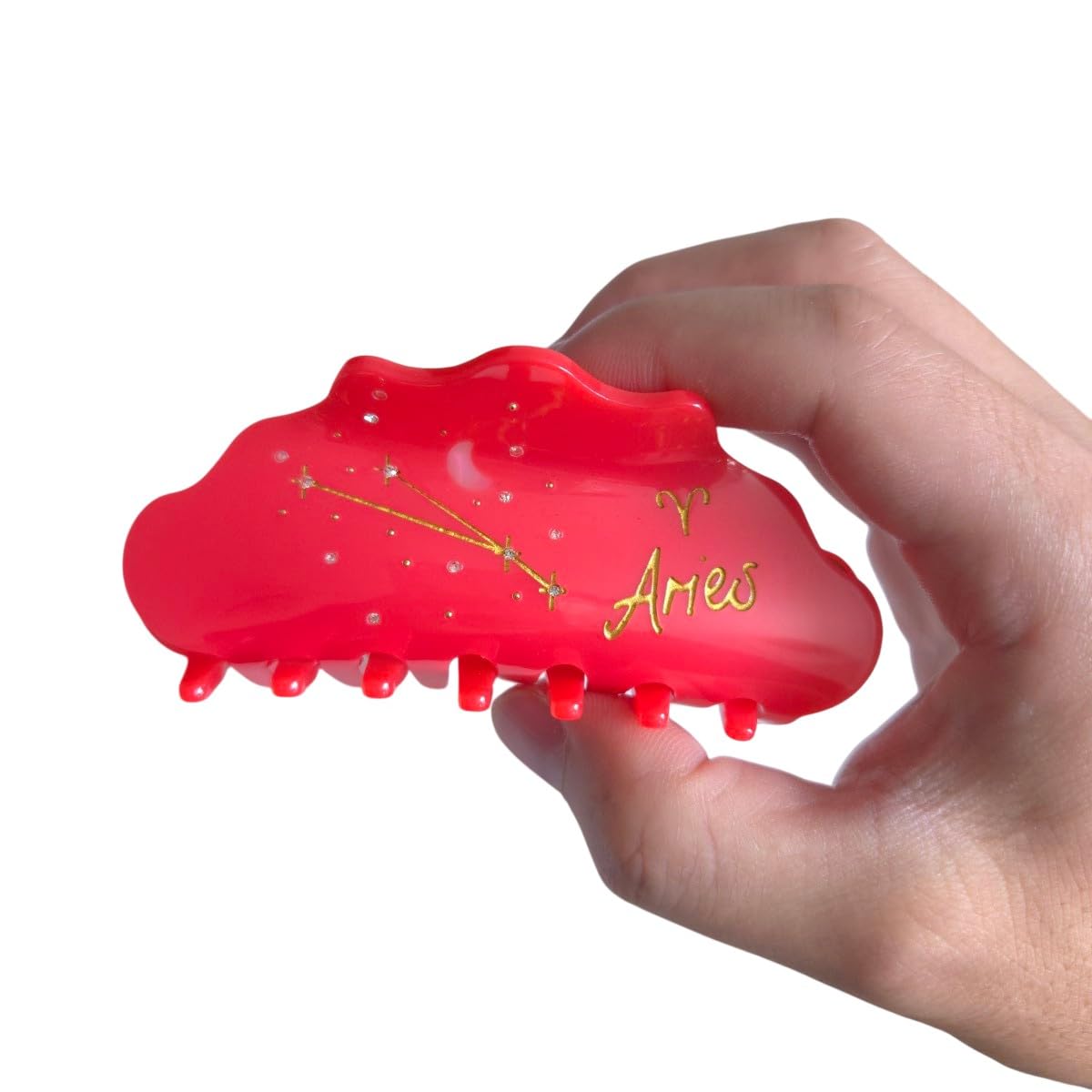Fantasy Aries Sign Hair Clips,Novelty Acetate Claw Clip,Zodiac Hair Clips for Women,Red