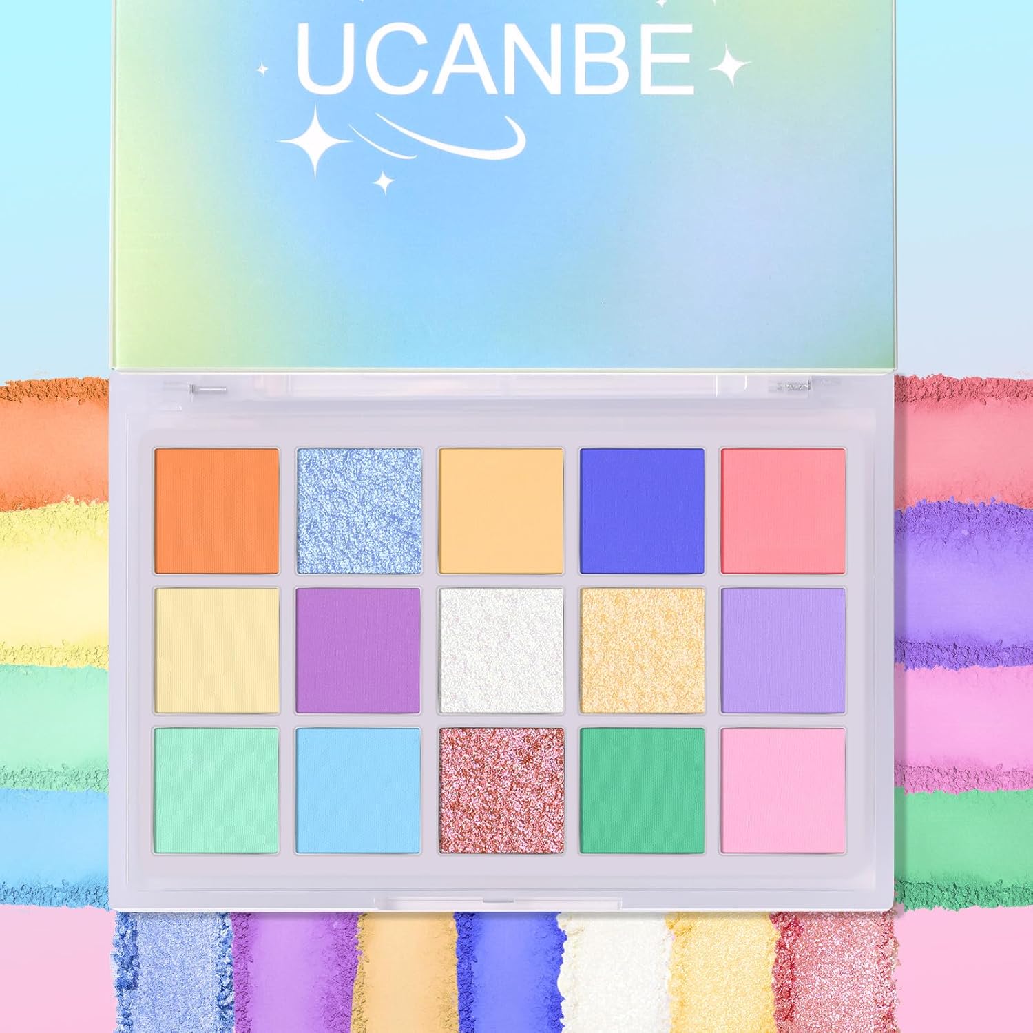 UCANBE Colorful Eyeshadow Palette – 15 Colors Vibrant Matte, Dazzling Shimmer & Glitter Duochrome Finishes – Highly Pigmented, Blendable, Long-Lasting Pastel Rainbow Eye Makeup Pallet - Seaform Dreams