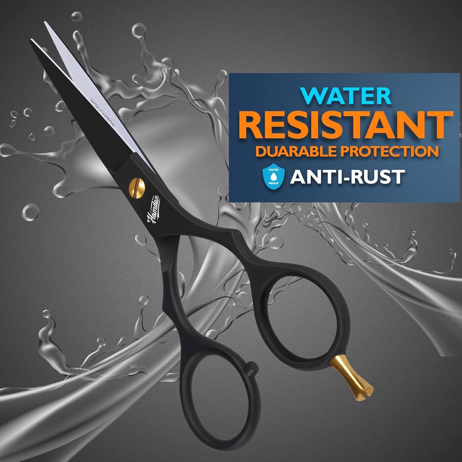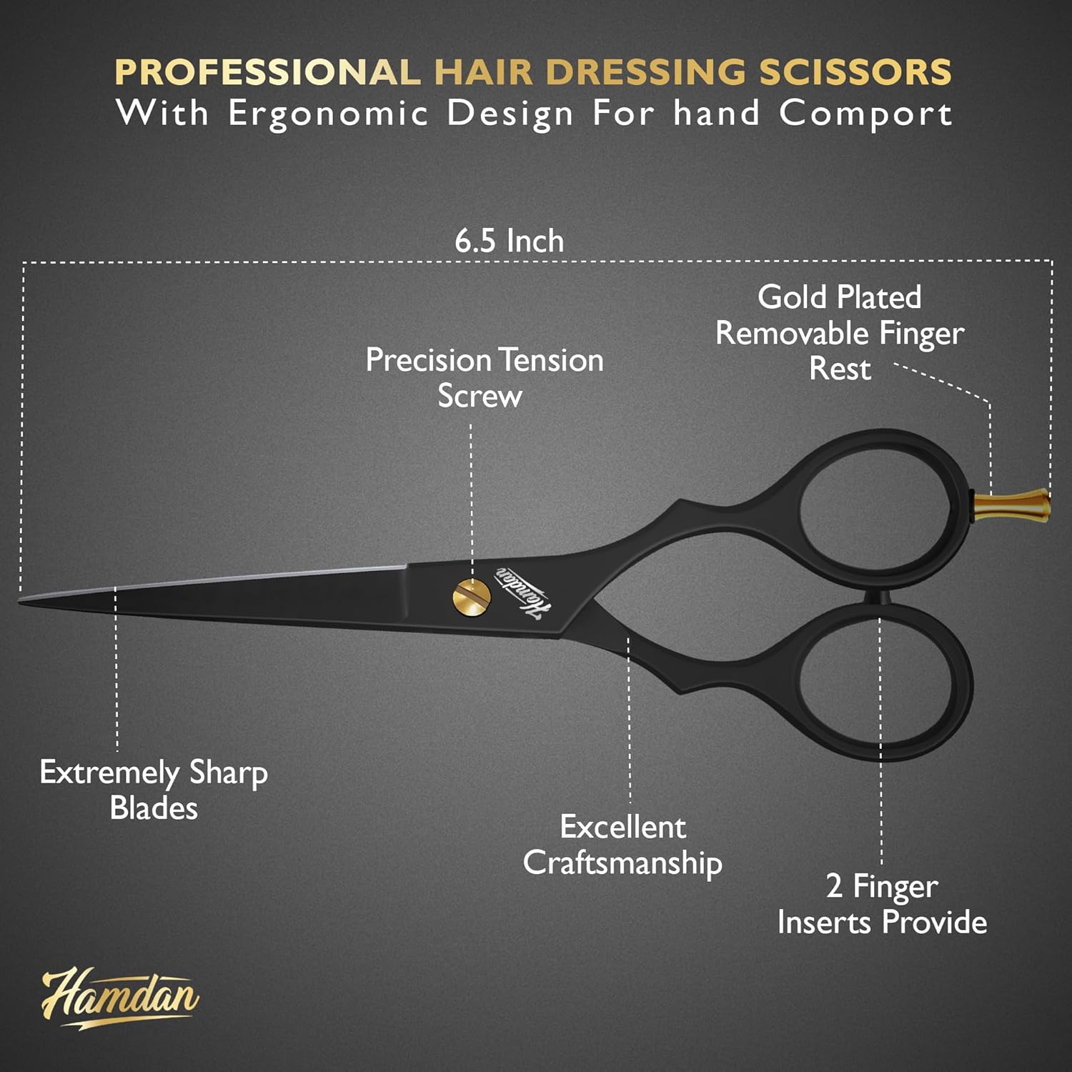 Hamdan 6.5” Matte Black Hair Scissors, Barber Shears for Men, Women & Kids – Ultra-Sharp Professional Hair Cutting Scissors with Pouch, Precision Haircut for Salon & Home - Tijeras De Peluqueria