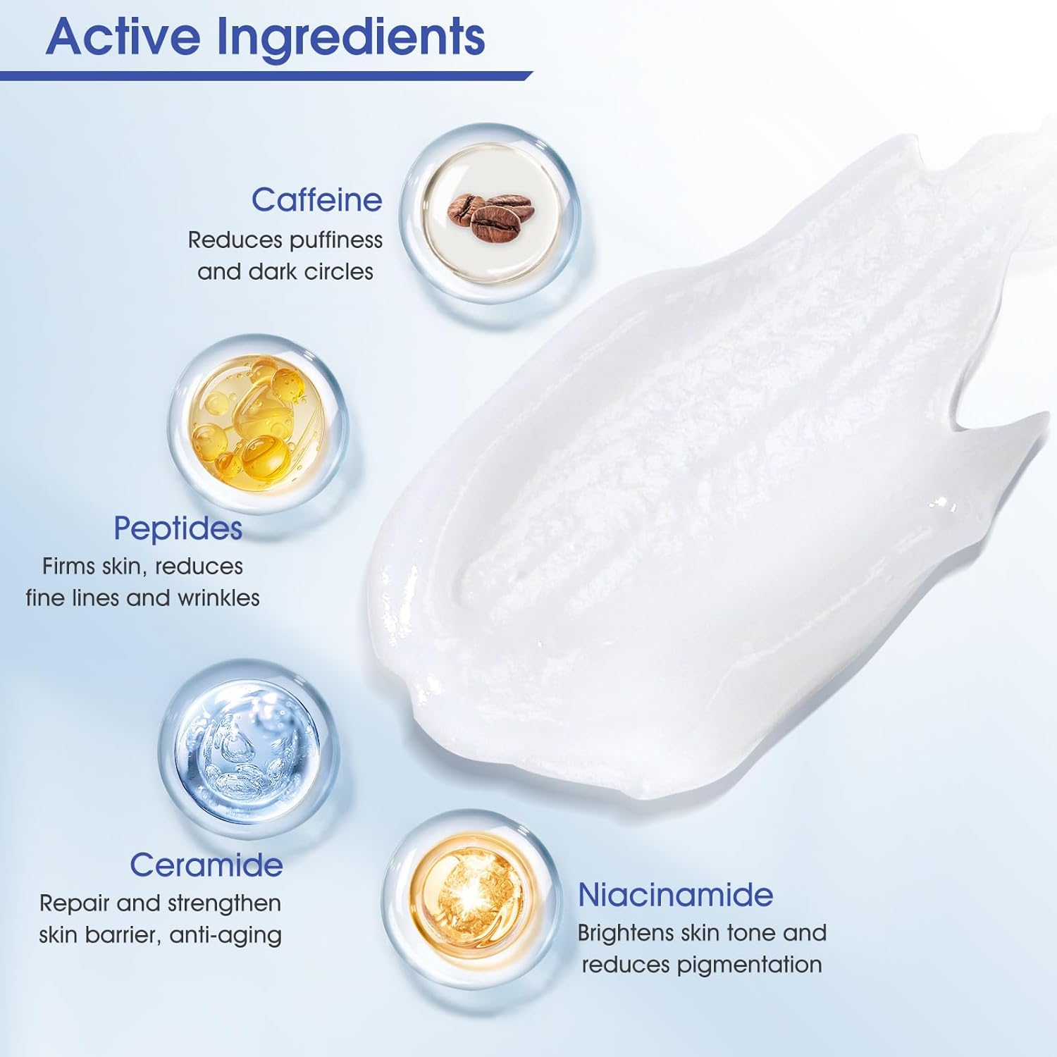Eye Cream for Wrinkles, Fine Lines & Crows Feet - With Ceramides, Peptides + Caffeine + Niacinamide - Anti Aging Skin Renewing Under Eye Cream for Men and Women, 0.5 Oz