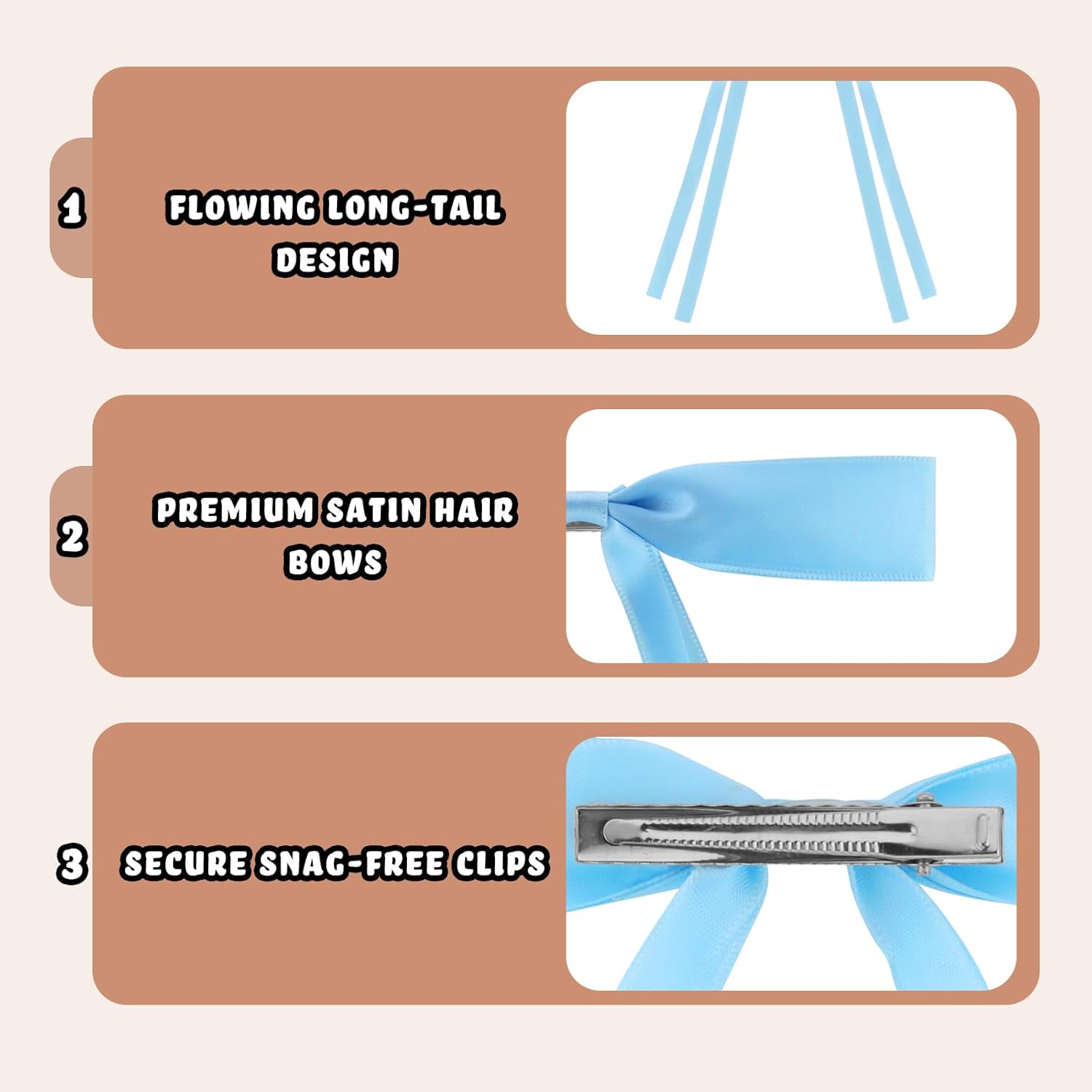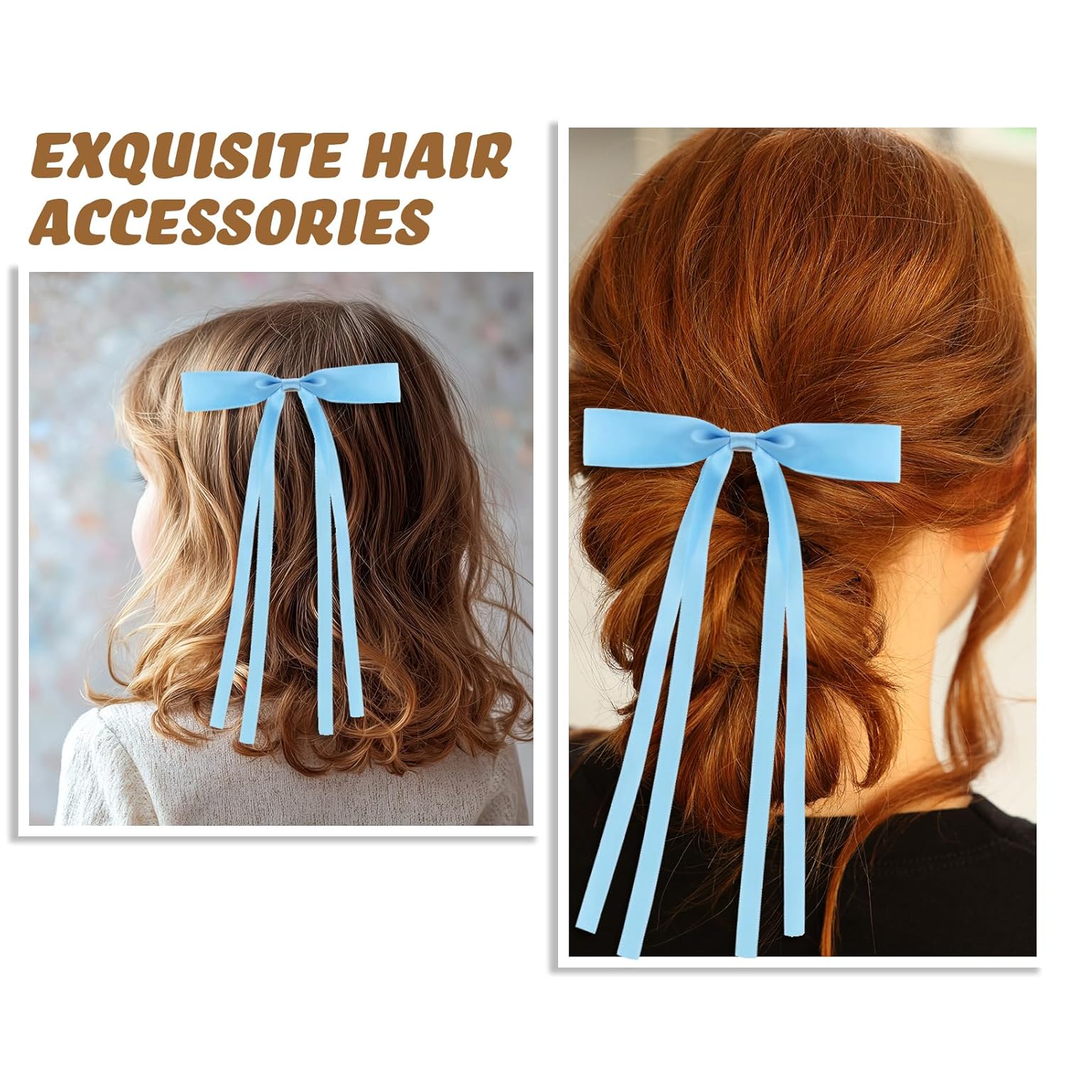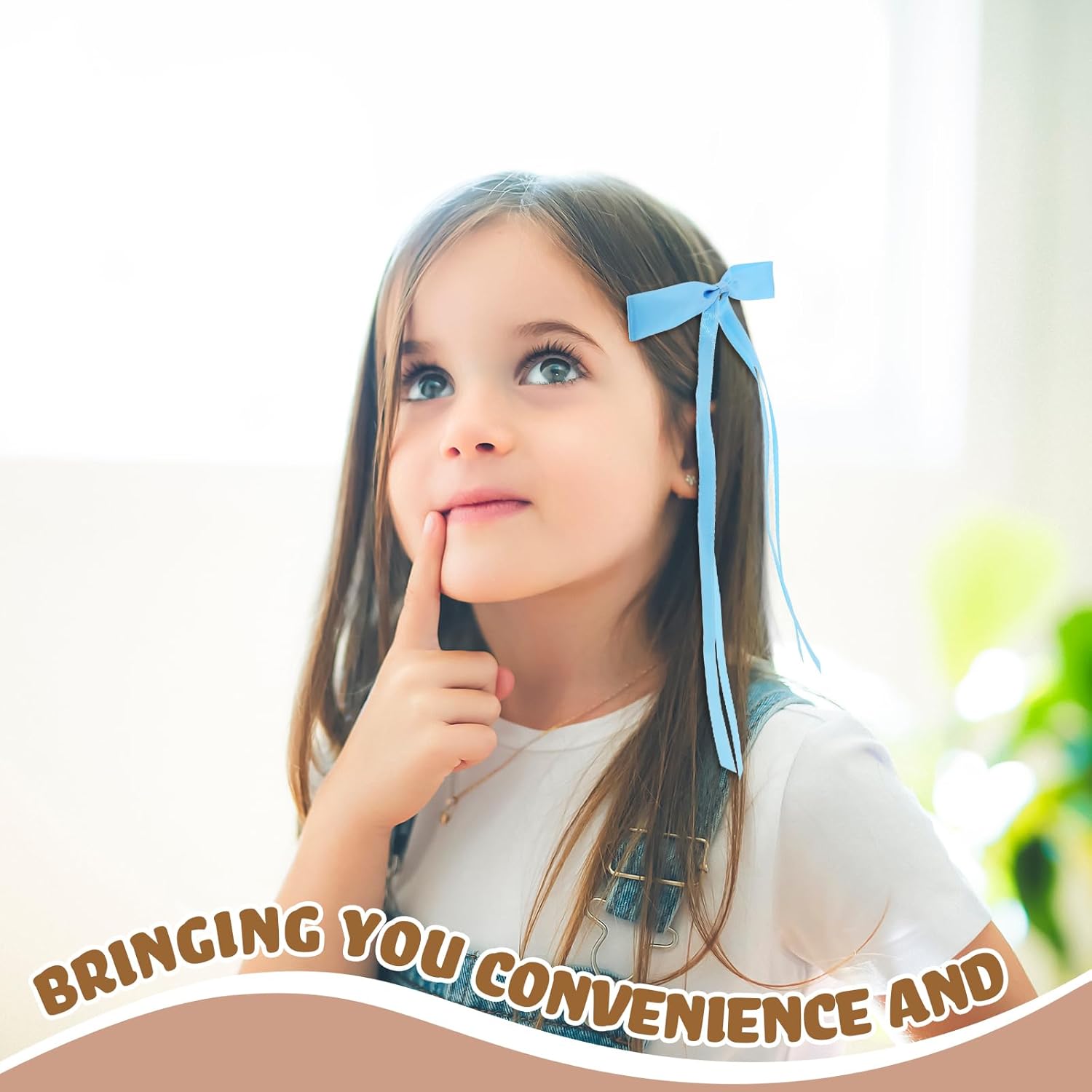 - 24-Pack Premium Satin Hair Bows – Bulk set of mini clip-on bows with elegant long tails, offering versatile styling for women and girls.