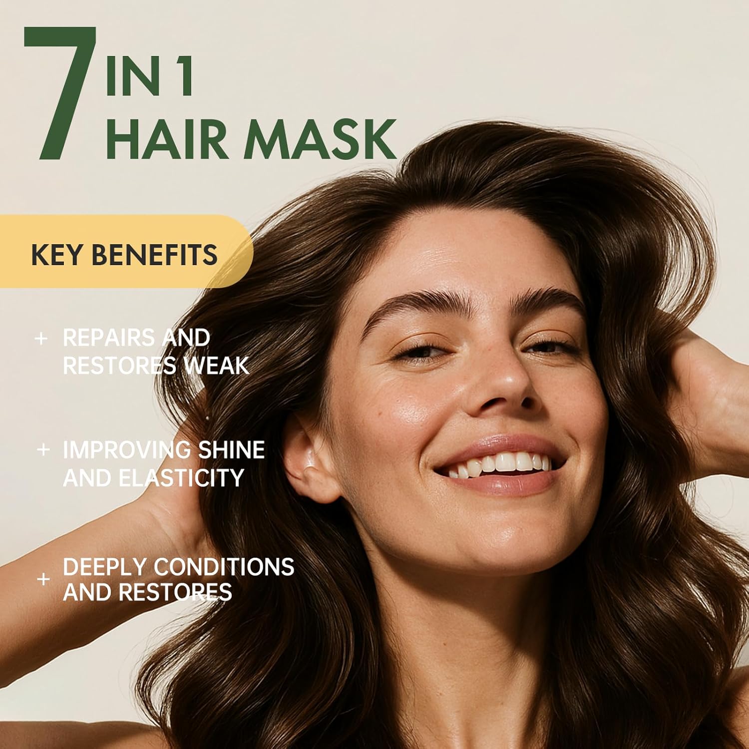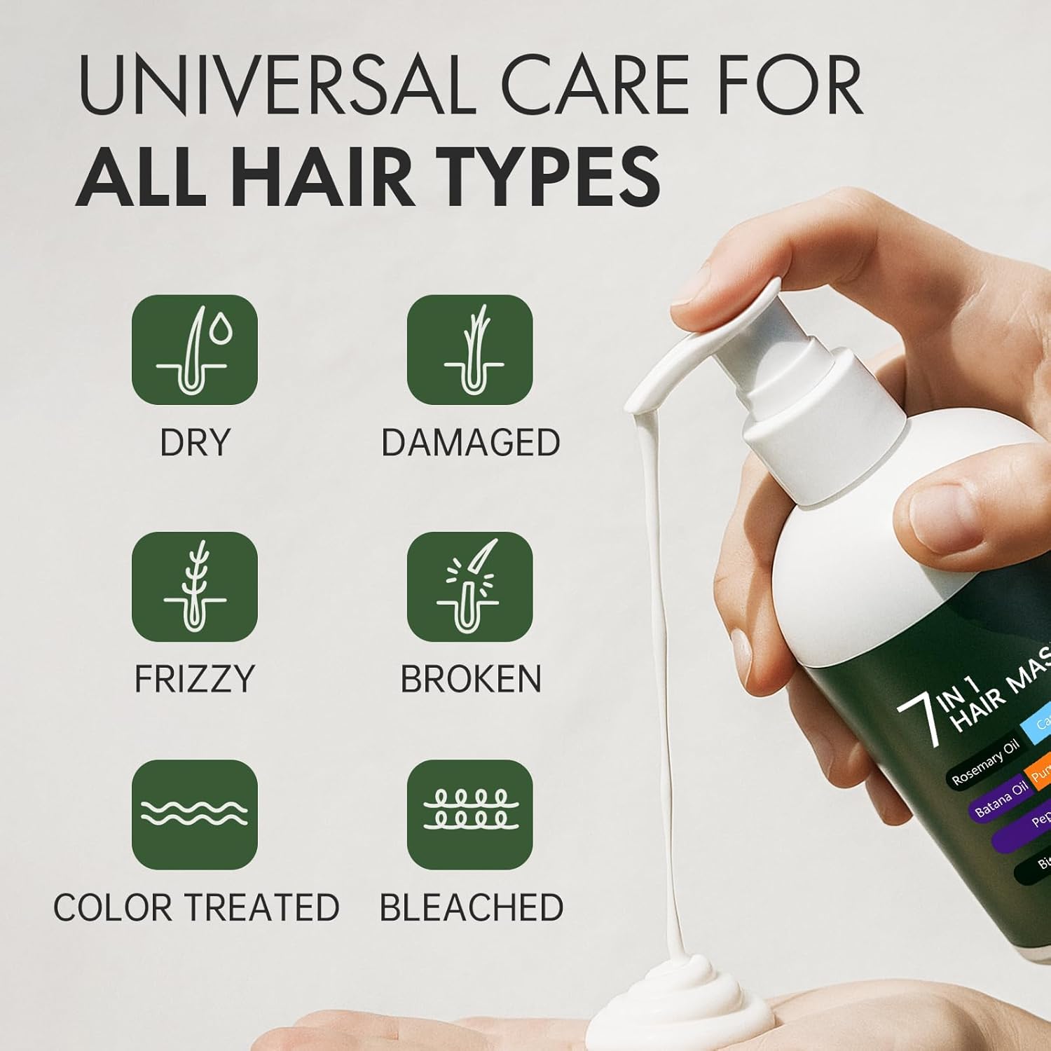 - SAFE, CLEAN FORMULA FOR ALL HAIR TYPES: Perfect for daily or weekly use on straight, curly, wavy, or color-treated hair. Free from parabens, sulfates, and harsh chemicals, this 7-IN-1 mask provides gentle yet effective care, leaving hair feeling refreshed and scalp comforted without irritation