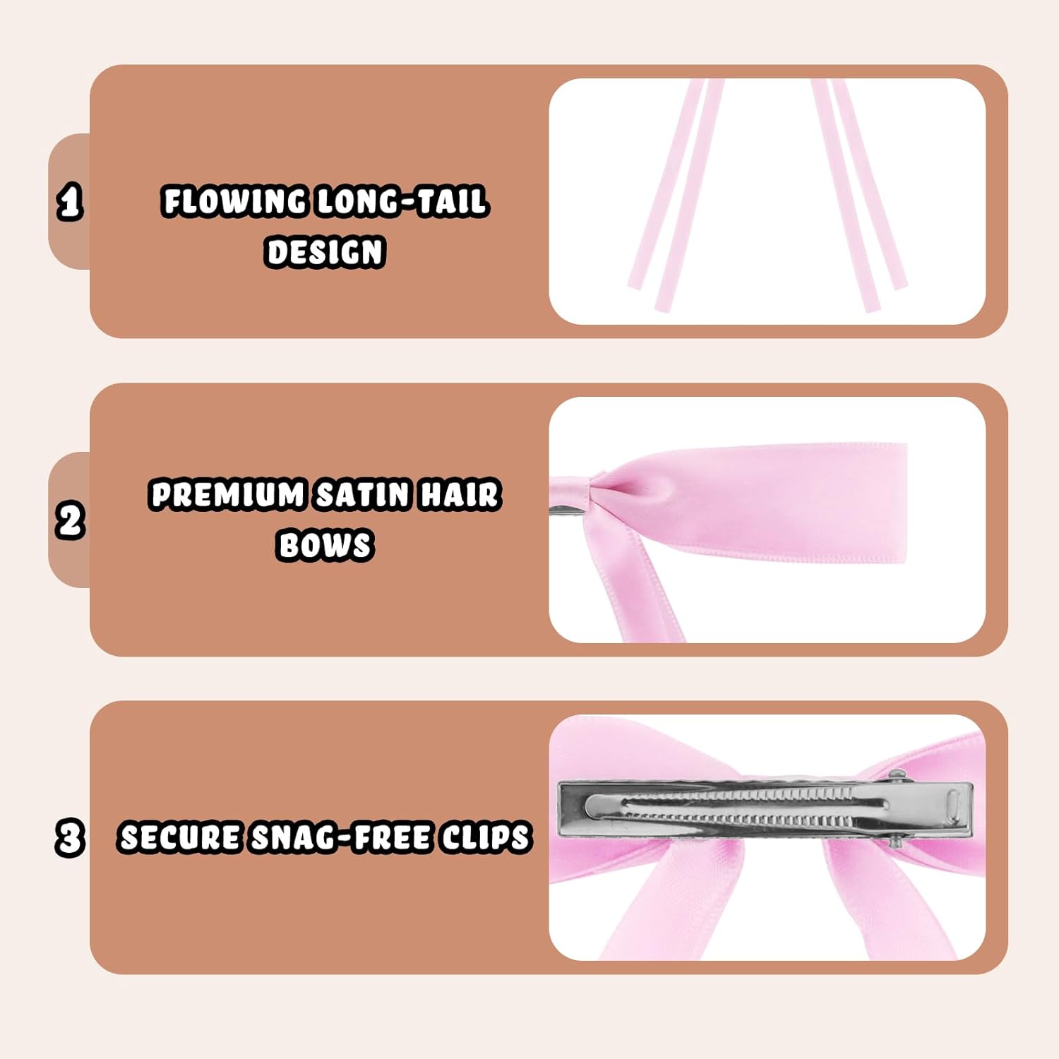 - 24-Pack Premium Satin Hair Bows – Bulk set of mini clip-on bows with elegant long tails, offering versatile styling for women and girls.