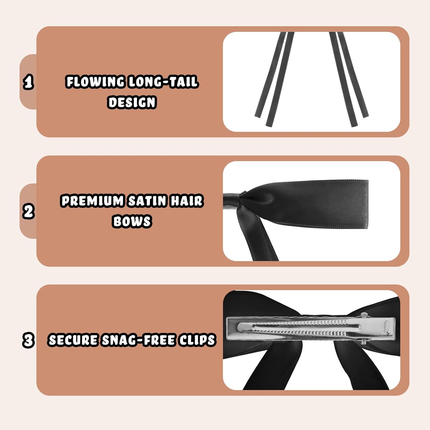 24 PCS Hair Bows Clips Ribbon,Mini Satin Hair Bows With Long Tail for Women and Girls Hairstyle Accessory Gift (Black)