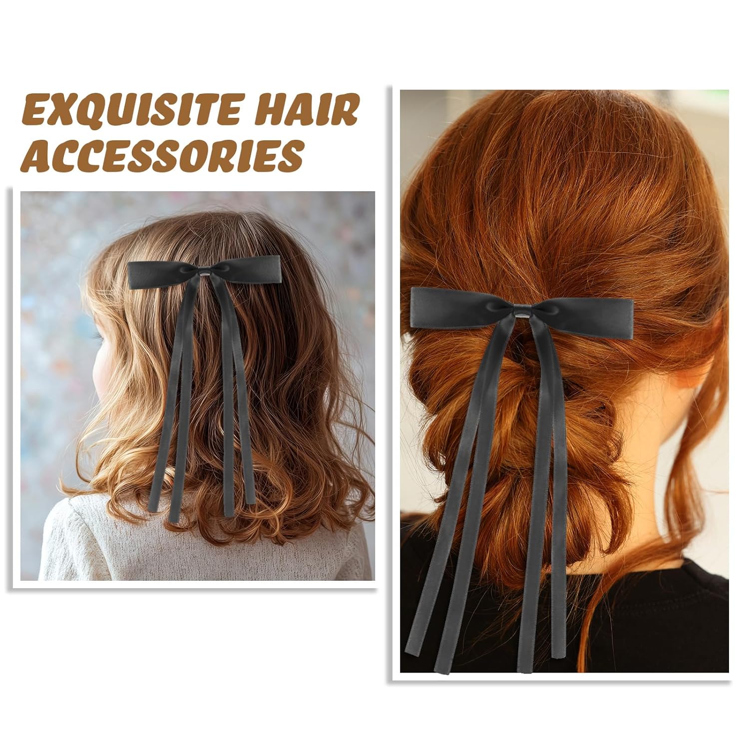 - 24-Pack Premium Satin Hair Bows – Bulk set of mini clip-on bows with elegant long tails, offering versatile styling for women and girls.