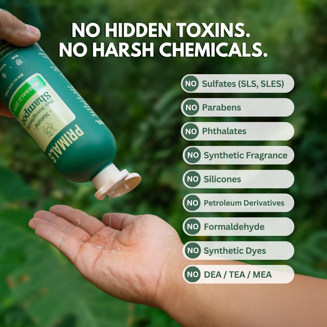 PRIMALS Hair Strengthening Shampoo - Caffiene, Biotin, Raw Honey, Rosemary Oil - Anti Hair Thinning - Natural Ingredients - Zero Artificial Fragrances, Sulfates, Parabens, or Dyes - 13.5 Fl Oz