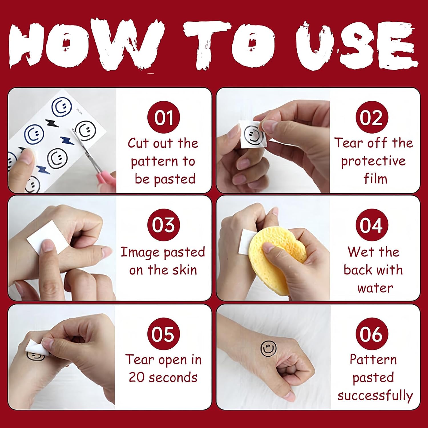 - Easy to Use: Just peel off the protective film, apply the fake tattoo to completely dry skin, wet the tattoo with water, and press for about 20 seconds, then peel off the backing paper. The tattoo will last about 2-4 days and can also be easily removed with baby oil, warm water, and soap.
