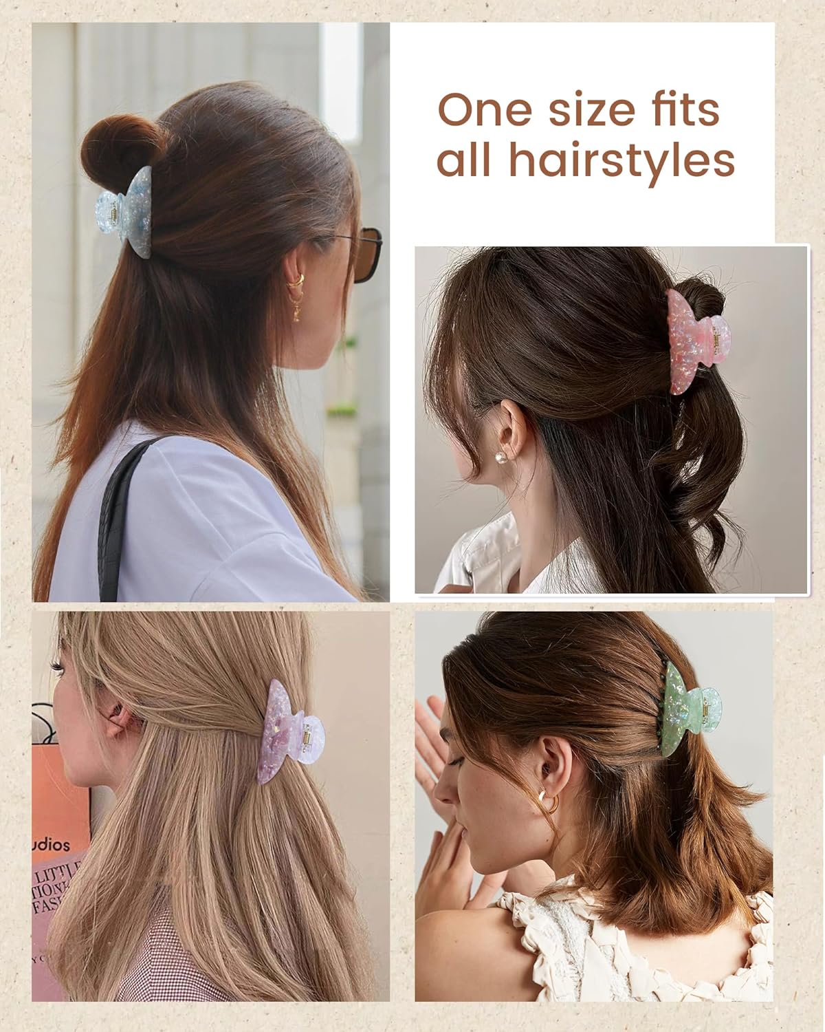 - Small & Exquisite: Crafted from acrylic, each hair clips weighs just 21.5g for comfort during all-day wear. The 3.1-inch design slips easily into purses or gym bags, letting you create polished buns, half-up styles, or face-framing looks anywhere