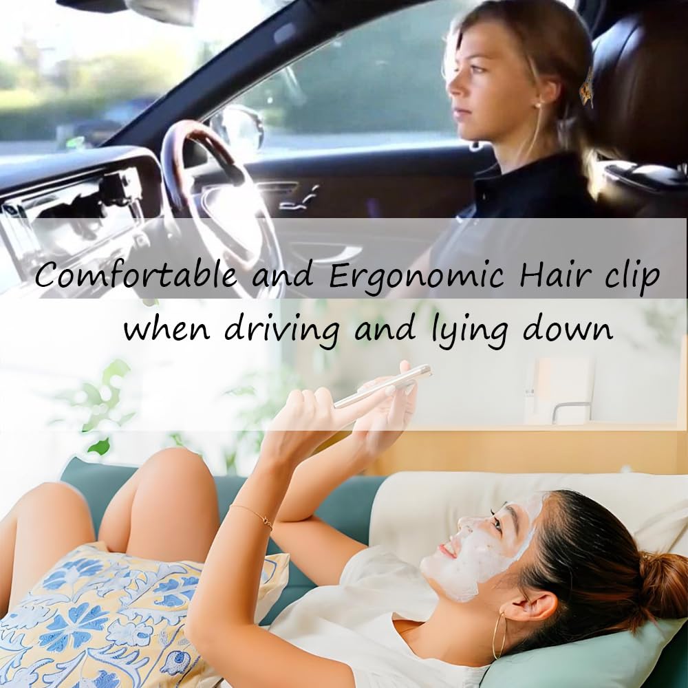 - 【 Comfortable Use】Elliptical appearance, with a diamond-shaped hollow design in the middle to make it more comfortable while driving or lying down. Hair clips for a wide range of uses: such as leaning back in a chair, doing Yoga, Driving and simply relaxing. Soft matte coating does a good job keeping your straight smooth hair from slipping out, but without pulling or grabbing it like a rubber would. Wide-toothed claw design provides strong hold while the curved shape conforms comfortably to head shape.