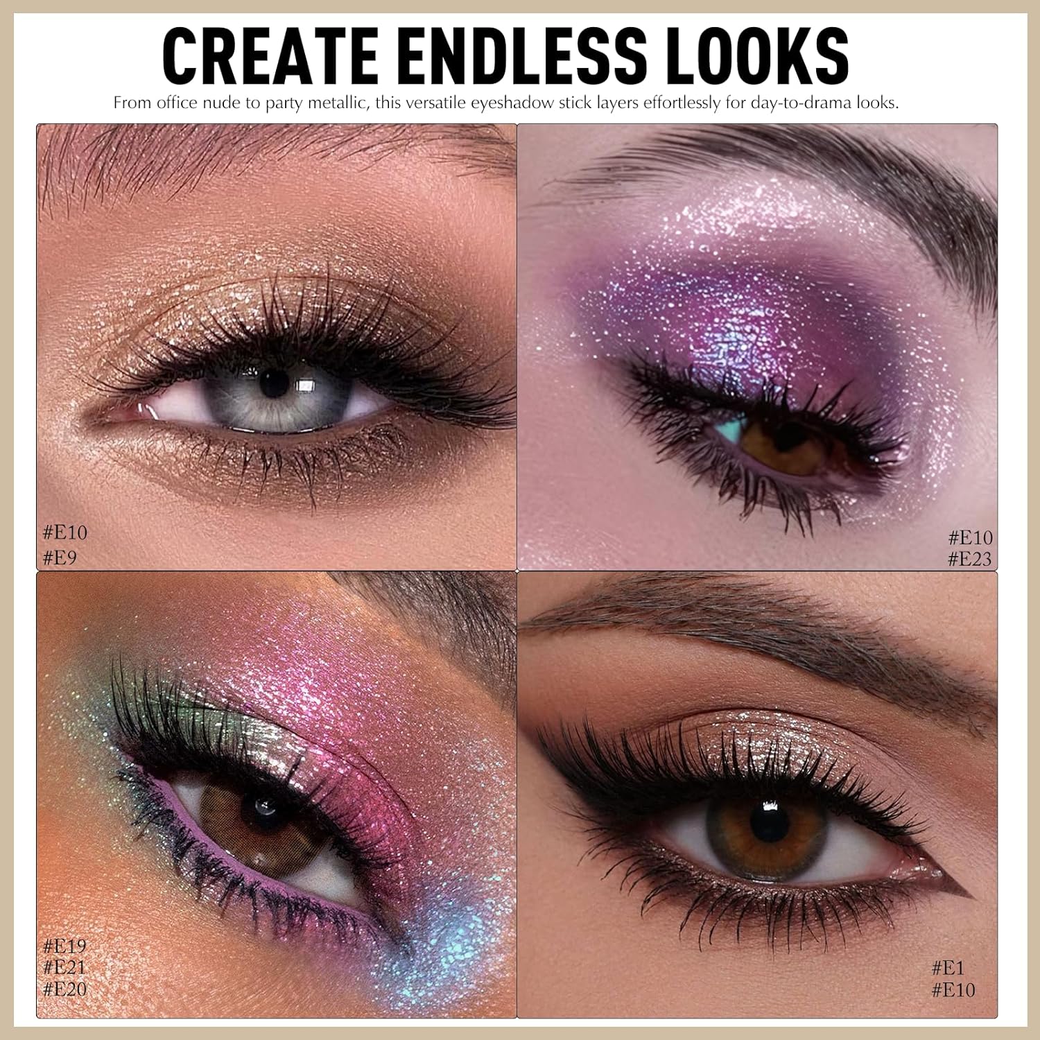 - Highly Pigmented & Long-Lasting: This high-pigment shimmer eyeshadow stick illuminates the eyes with highly pigmented, long-lasting color. Effortlessly glides on for a vibrant, luminous finish. Its creamy, smooth texture applies evenly without creasing