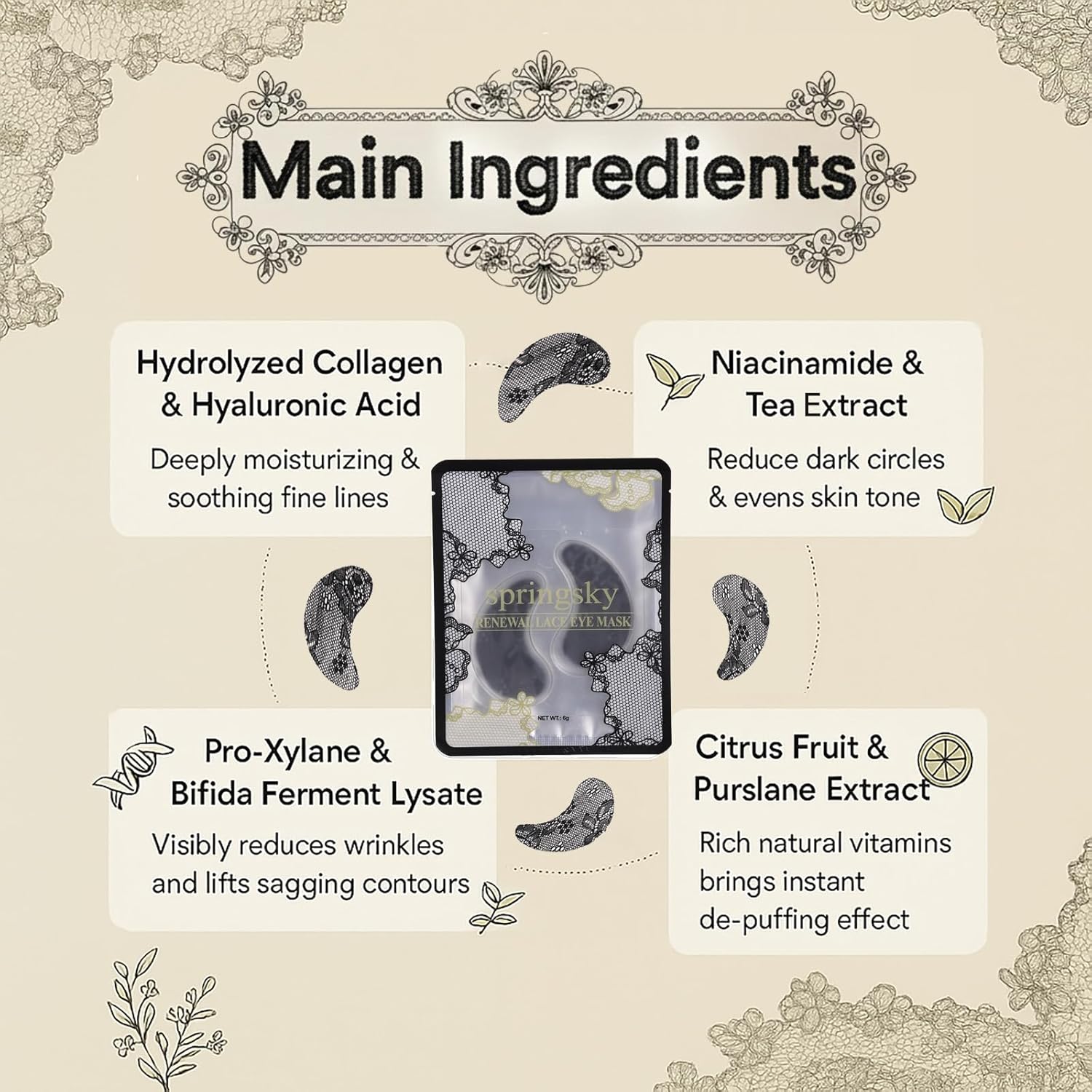 - 【Unique Shape Design】:Under eye patches feature a delicate, lace-textured design that helps gently moisturize the skin while maintaining refined elegance. Reveal a different kind of allure and enhance your glamour.