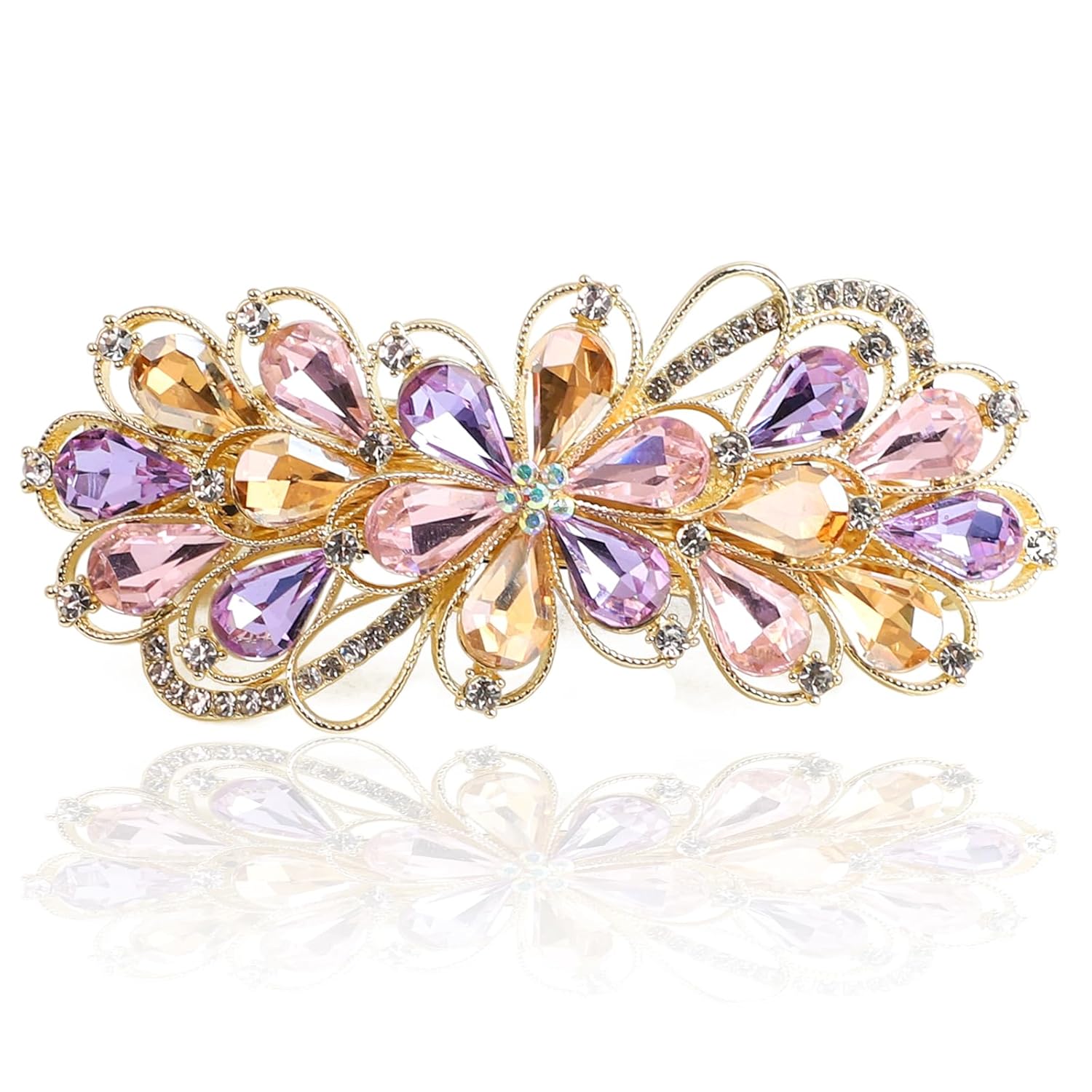 Large Gorgeous Rhinestone Hair Barrette for Women, Flower Jewelry Design (Champagne & Purple)