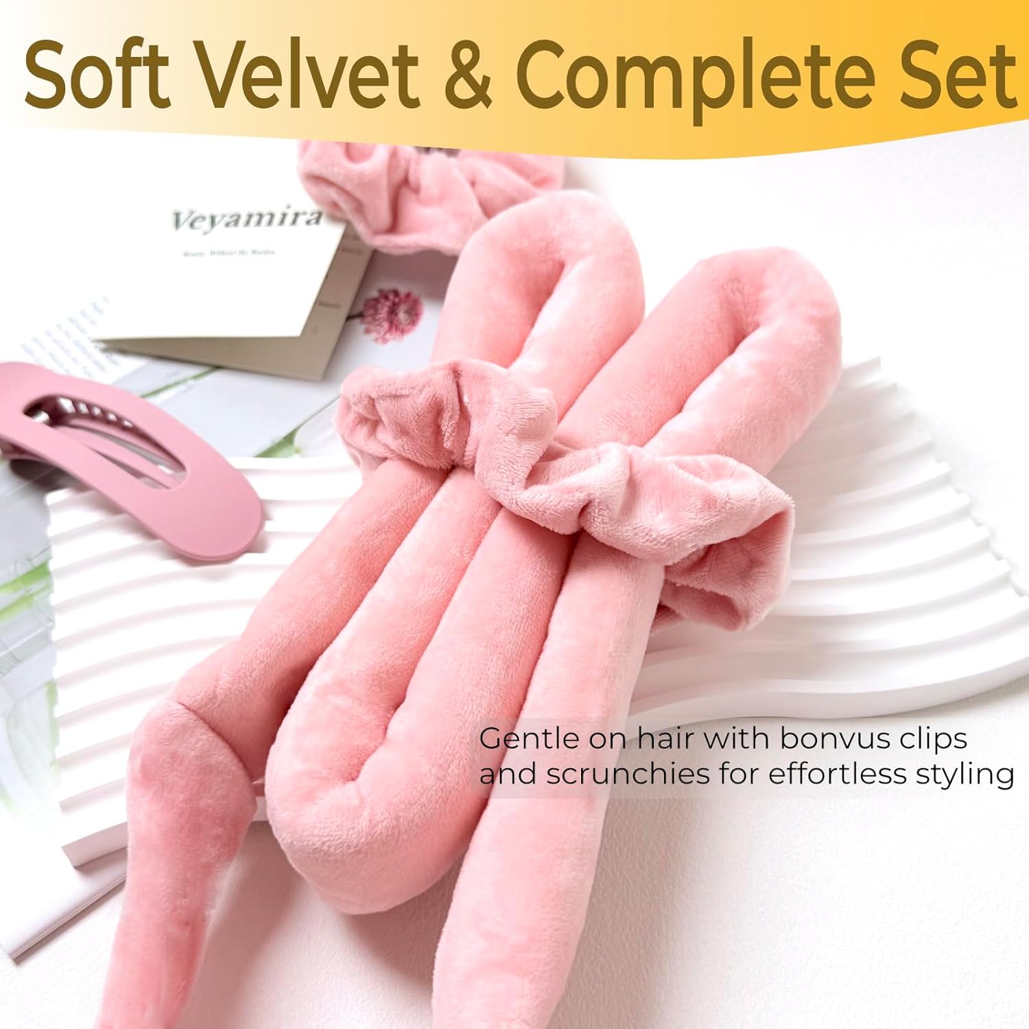 - NO HEAT, NO DAMAGE:Say goodbye to dryness, breakage, and heat damage. Our heatless curling rod with secure tie-end design stays in place overnight, letting you enjoy overnight curls while you sleep. The soft velvet surface holds hair better than satin, saving precious morning time. Each set includes 1 curling rod, 2 scrunchies, and 1 hair clip for complete styling