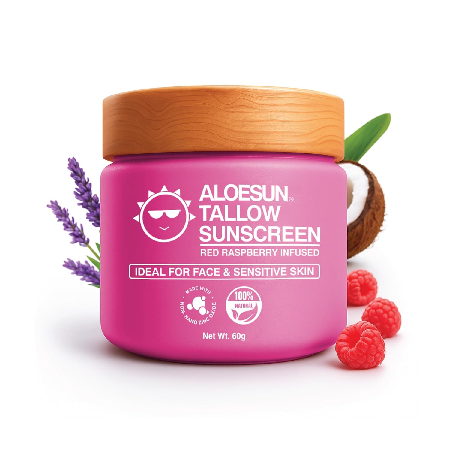ALOESUN Organic Beef Tallow Sunscreen - Natural Sunblock Lotion for Face and Body with Non Nano Zinc Oxide Mineral Protection - Reef Safe Travel Size Tallow Moisturizer for Adult and Baby - 2.12 Oz
