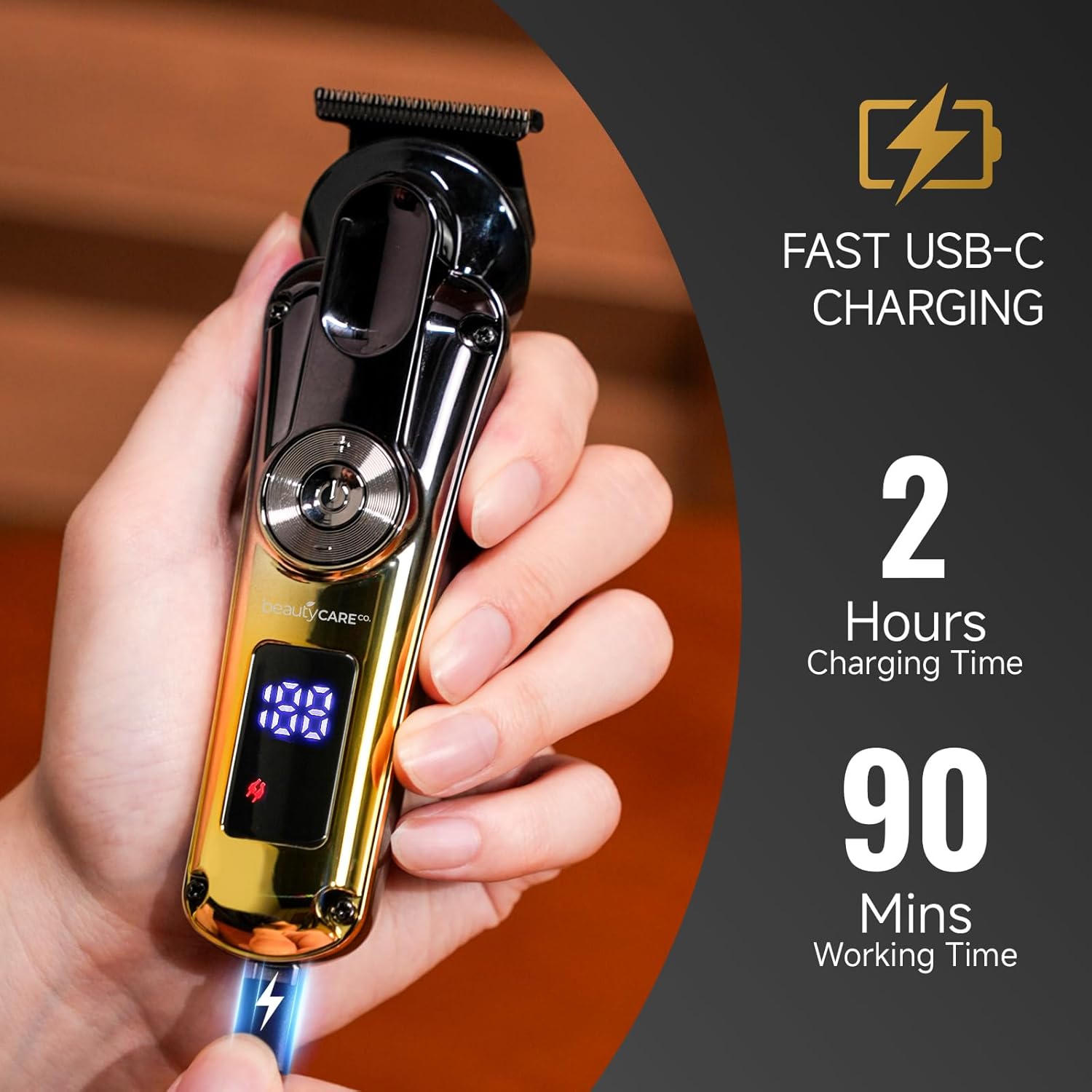 - ๐ฅ POWER & SAFETY GUARDIAN This hair clippers kit can last up to 90-minute cordless freedom from just 2 hours of USB fast chargingโperfect for airport layovers or last-minute touch-ups. The glowing LED display shows exact battery percentage (down to 1%), so you'll never get stuck mid-trim. Plus, travel-safe lock prevents accidental activation in luggage or curious kids' hands!