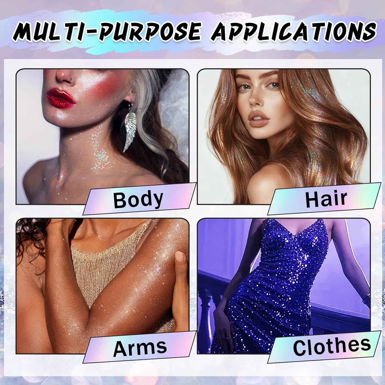 - EASY TO CLEAN: Holographic glitter suitable for all skin color for your hair and makeup look is the perfect choice. It is also easy to rinse off with water or soap, saving your precious time
