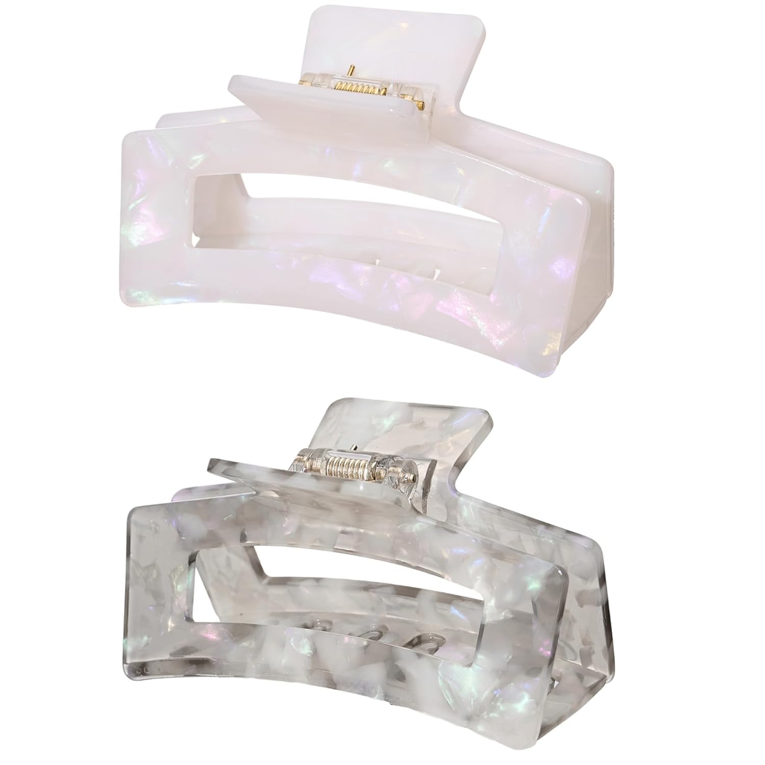 Cellulose Acetate Hair Clips for Women, Rectangle Tortoise Shell Celluloid Strong Hold Claw Clips for Thin Thick Hair, Barrette Jaw Clamp Styling Accessories for Ladies Mother (2 Pack)